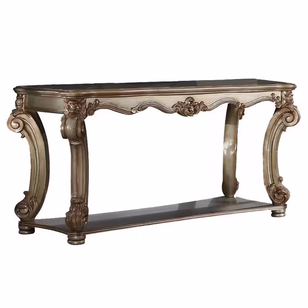 Acme Furniture Vendome 58 in. Gold Patina Standard Rectangle Wood Console Table with Shelves
