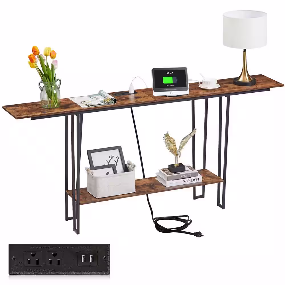 TRIBESIGNS WAY TO ORIGIN Adan 55 in. Rustic Brown Standard Rectangle Wood Console Table with 3 Tiers