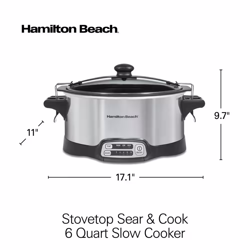 Hamilton Beach Stay or Go Stovetop Sear and Cook 6 Qt. Stainless Steel Slow Cooker