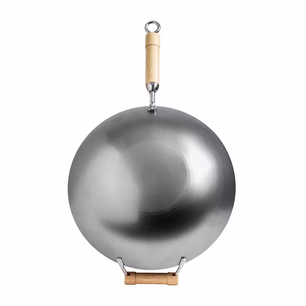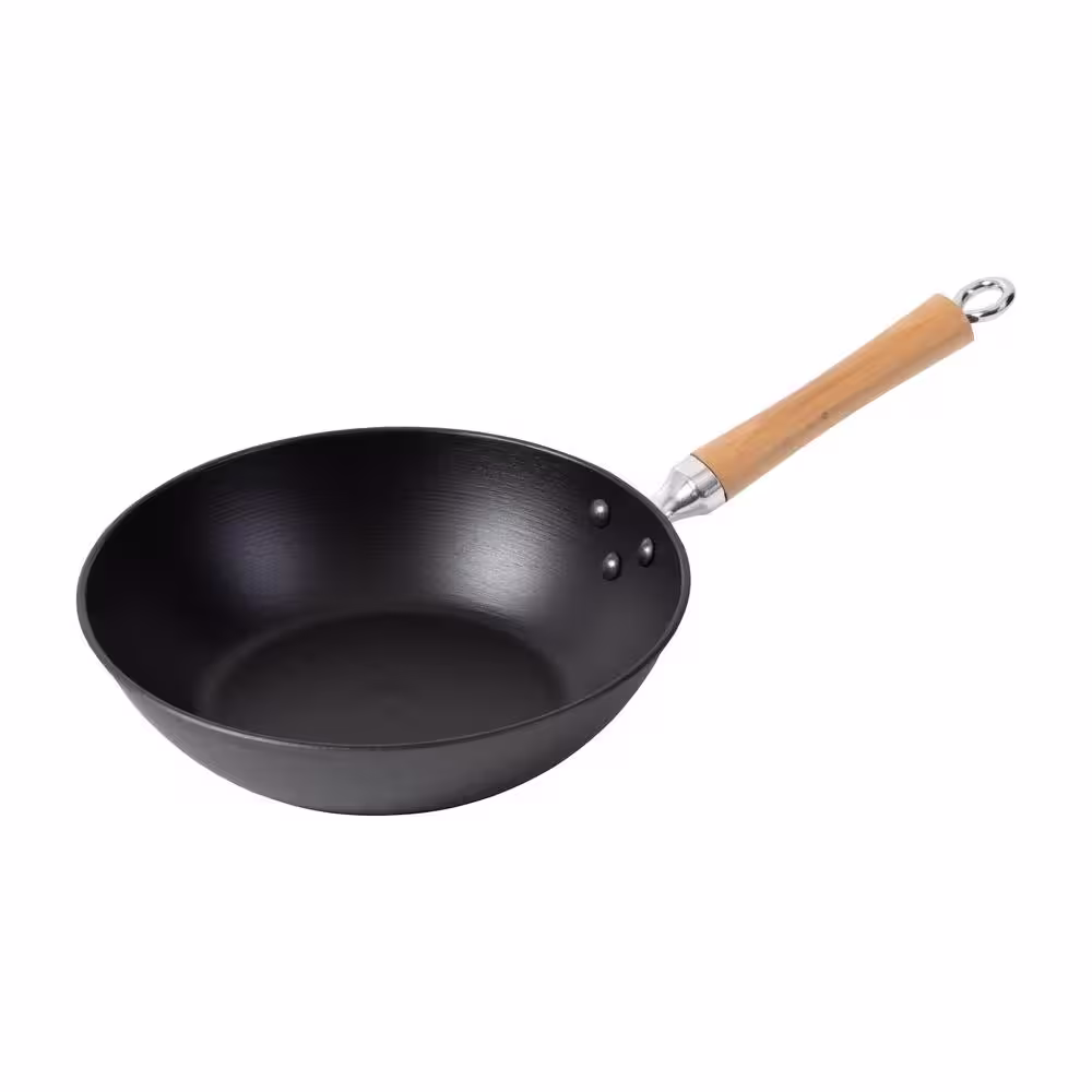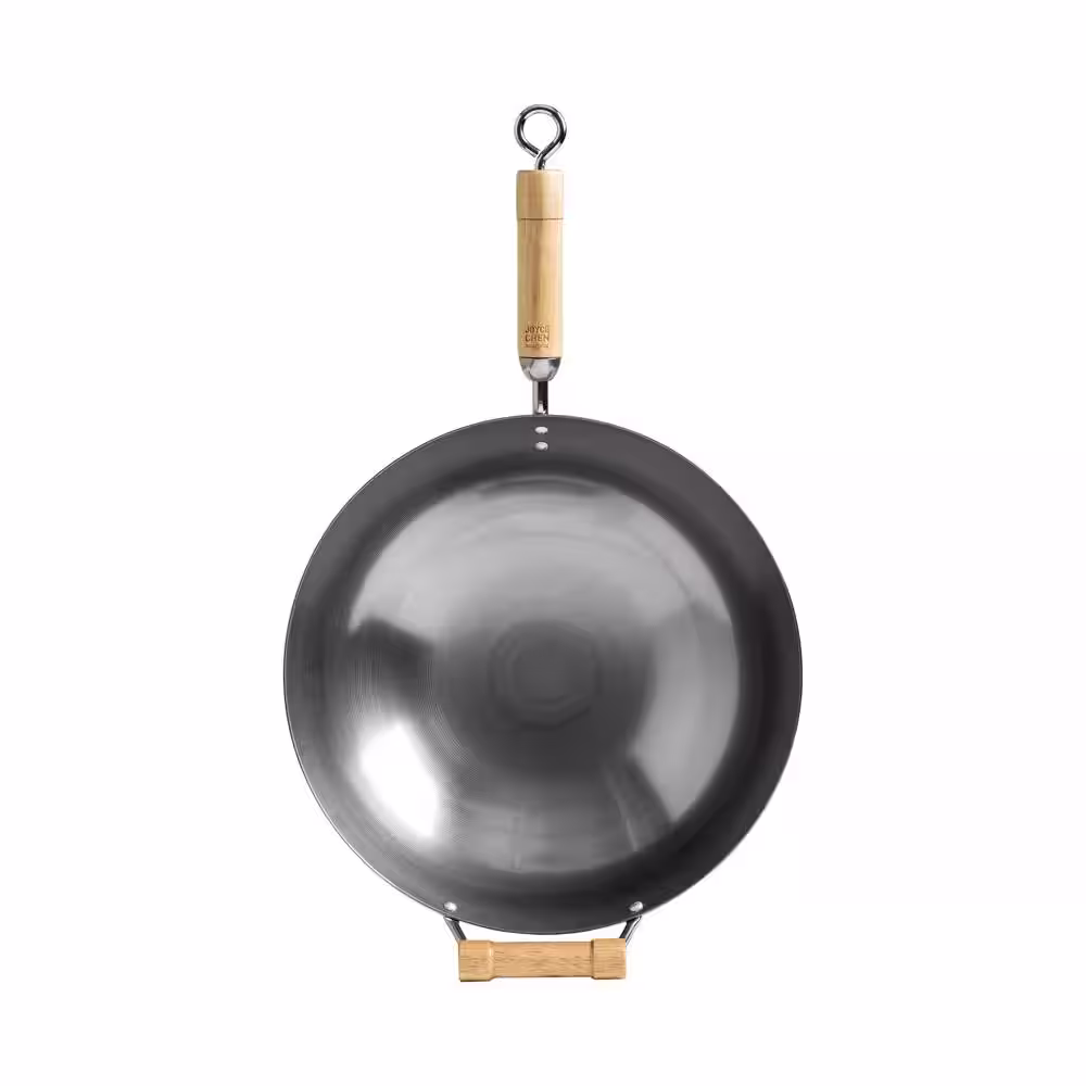 JOYCE CHEN Joyce Chen Professional Series Small 11.5 in. Dia. Black Cast Iron Wok with Maple Handle