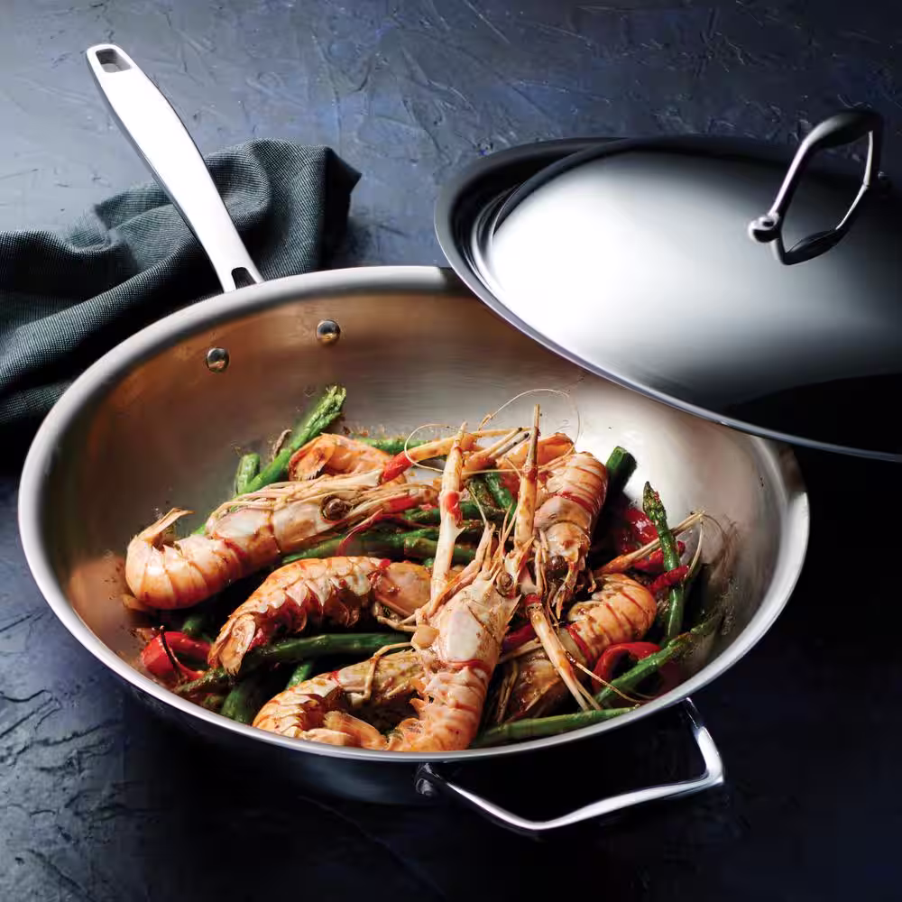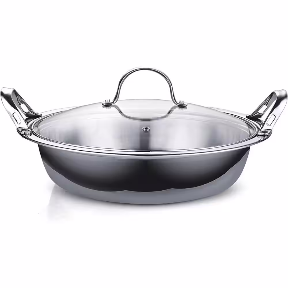 Cooks Standard Large 14 in. Multi-Ply Clad Stainless Steel Induction Tagine Wok with 2 Handle and Extra Glass Lid