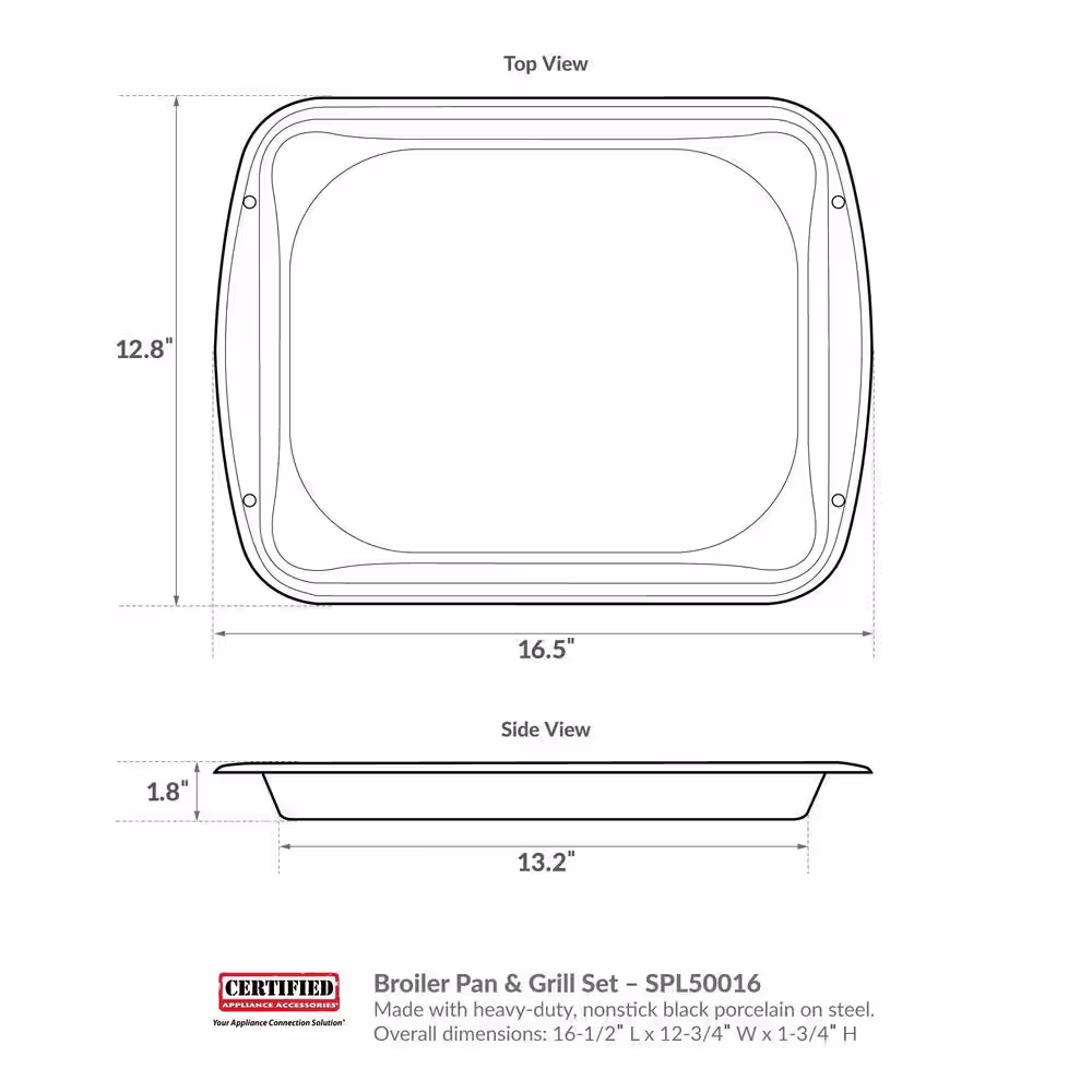 CERTIFIED APPLIANCE ACCESSORIES 2-Piece Porcelain Heavy-Duty Broiler Pan and Grill Set