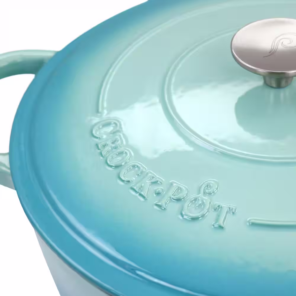 Crock-Pot Artisan 5 qt. Round Enameled Cast Iron Braiser Pan with Self Basting Lid in Aqua Blue