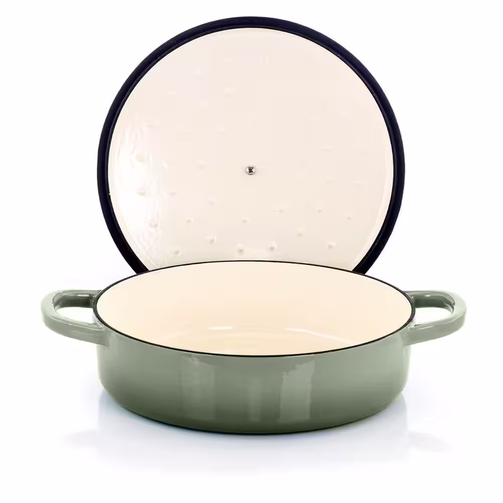 Crock-Pot Artisan 5 Qt. Round Pistachio Green Enameled Cast Iron Braiser Pan with Self Basting Lid
