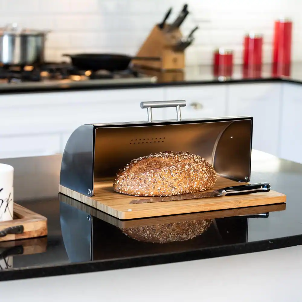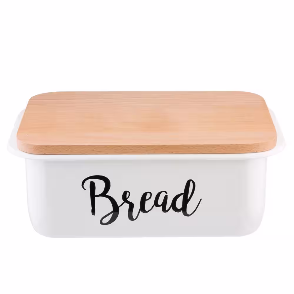 TableCraft Enamelware Collection Enamel Coated Steel Bread Box with Lid (2-Pack)
