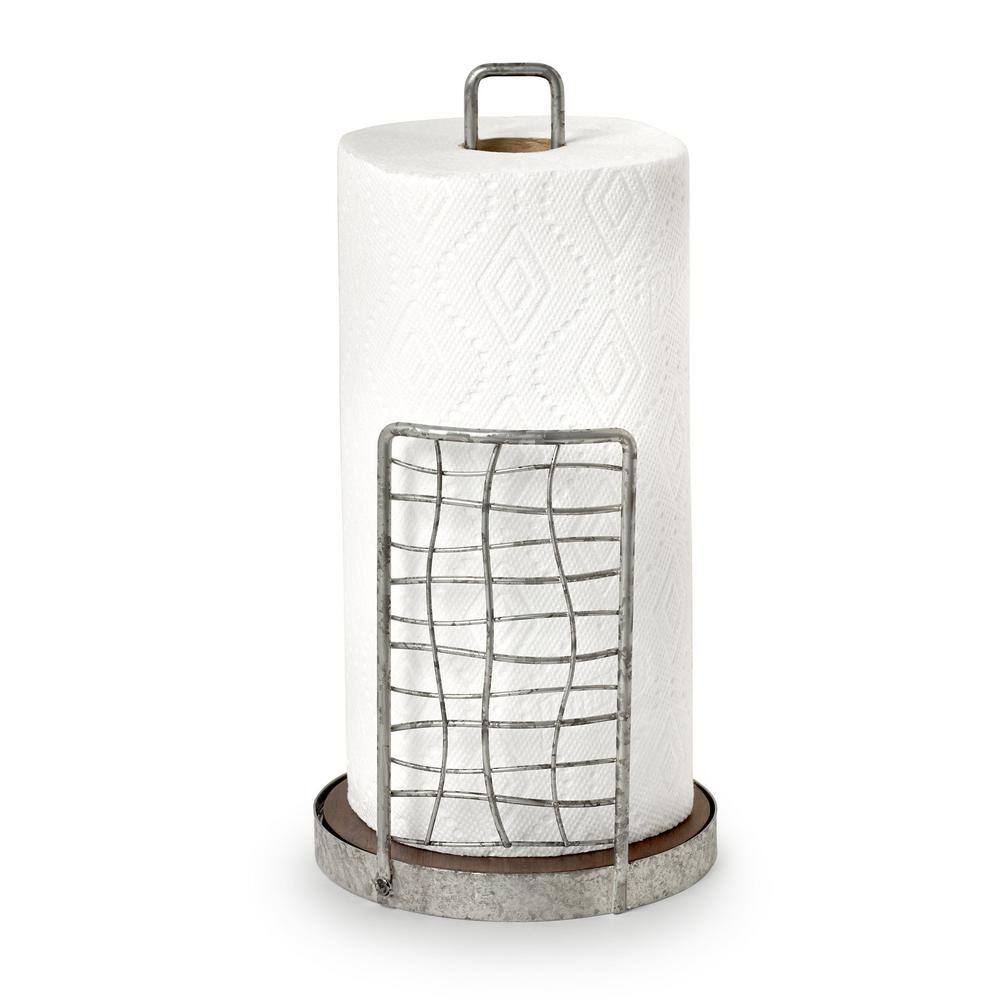 None Grove Free Standing White Paper Towel Holder with Weighted Base and Padded Base