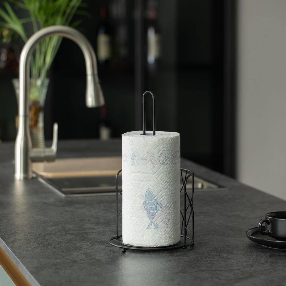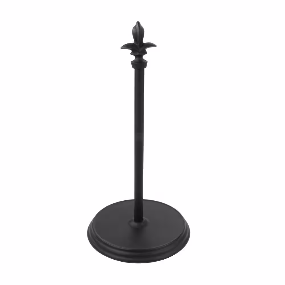 Basicwise Freestanding Black Iron Paper Towel Holder Stand Roll Dispenser with Frame for Kitchen