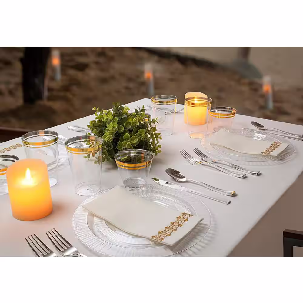 None Hammered 300 Piece Gold Disposable Plastic Flatware Cutlery Set (Service for 75)