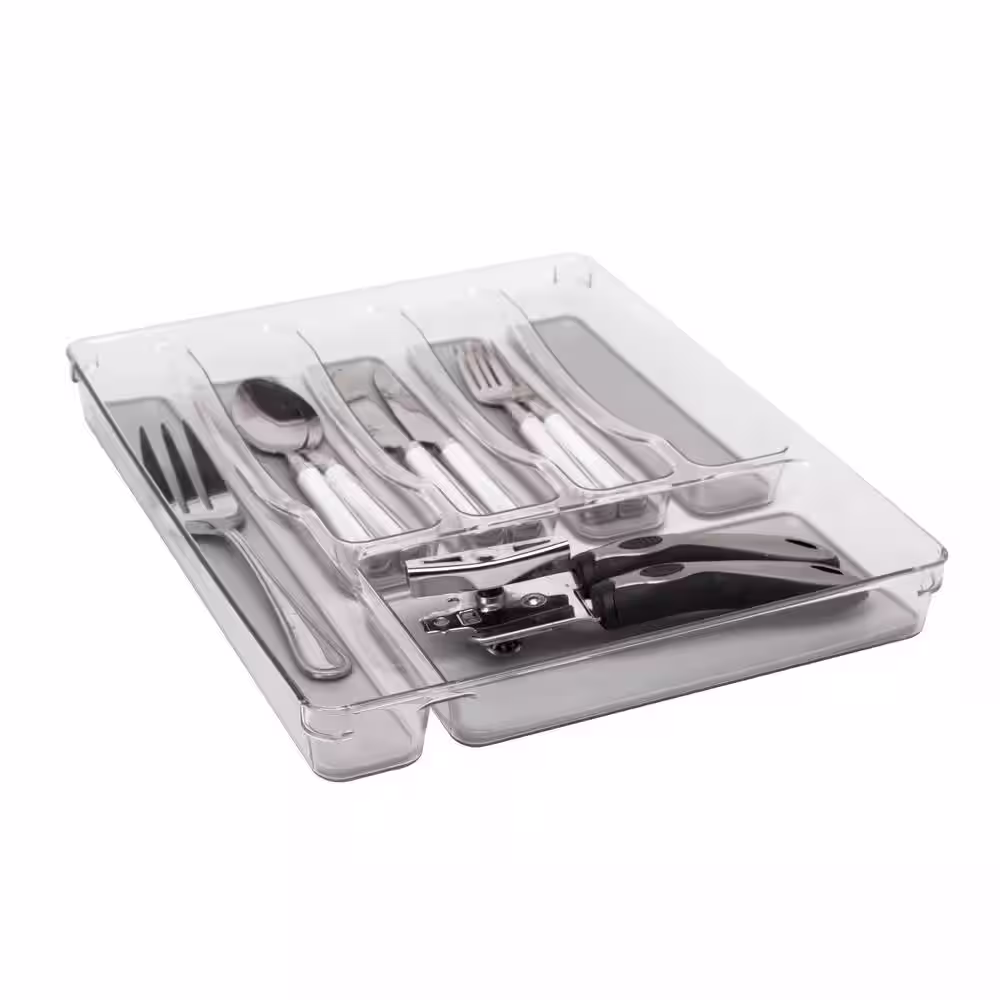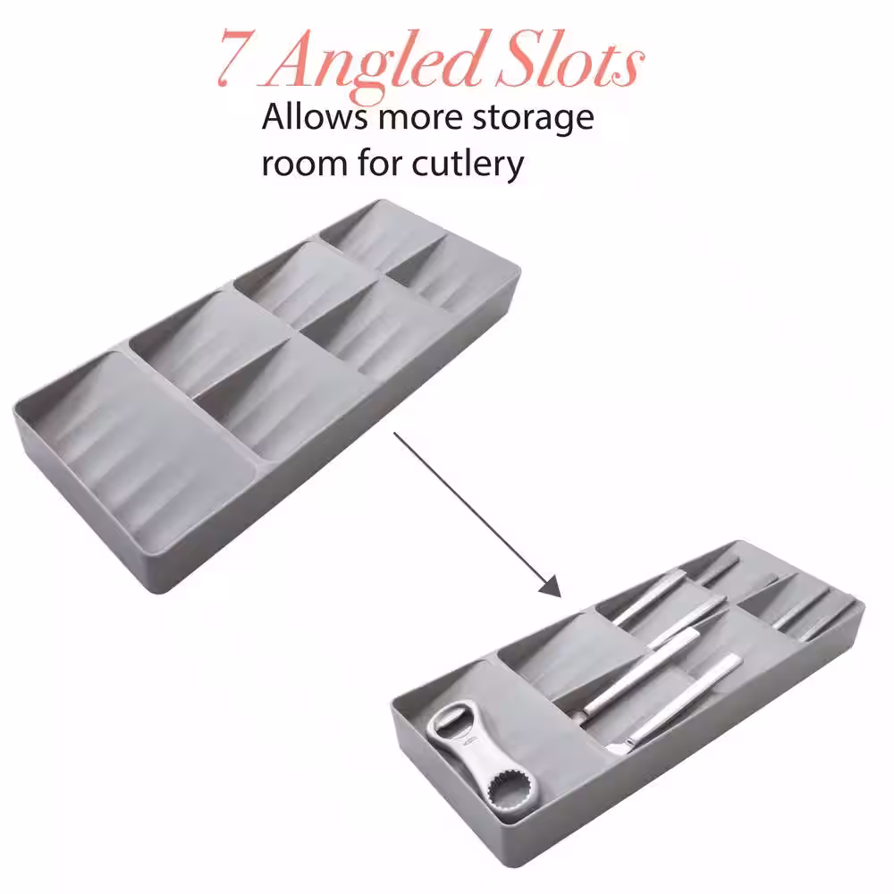 Kitchen Details 7 Slot 1.77 in. H x 6.22 in. W x 15.75 in. D Plastic Drawer Cutlery Organizer in Grey