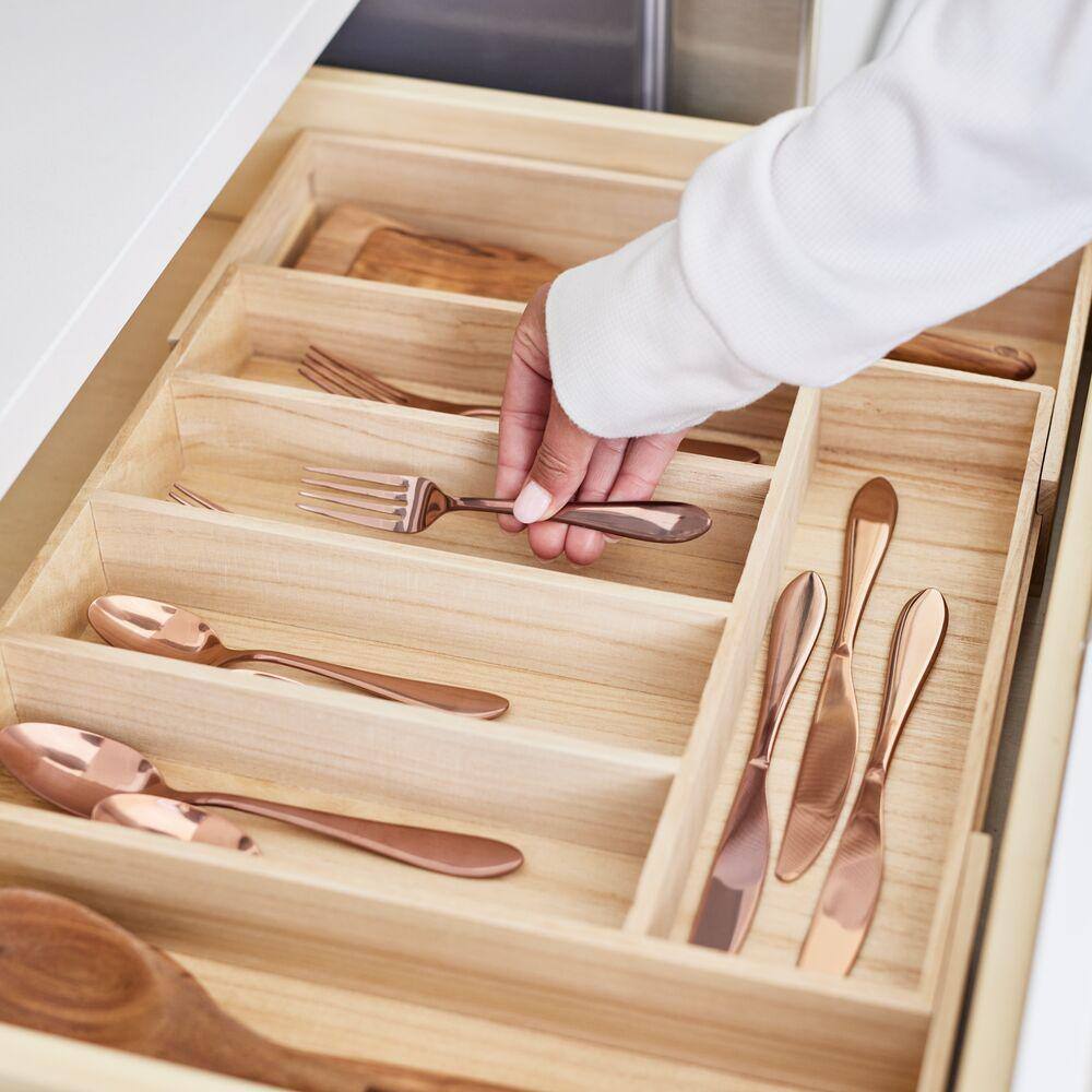 Home Decorators Collection 10x3x19 in. Cutlery Divider Tray for 15 in. Shallow Drawer in Natural Maple