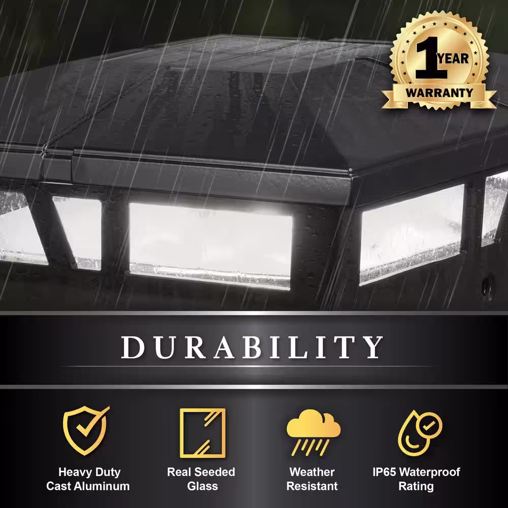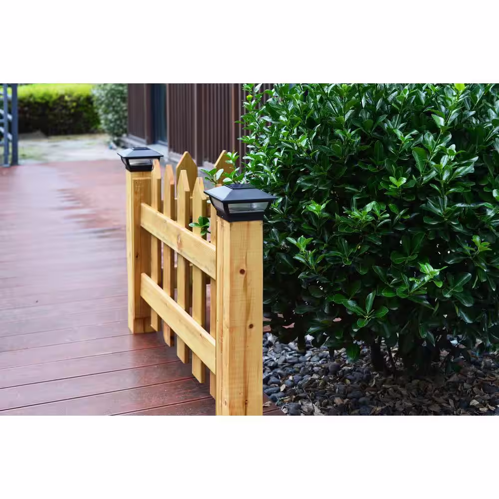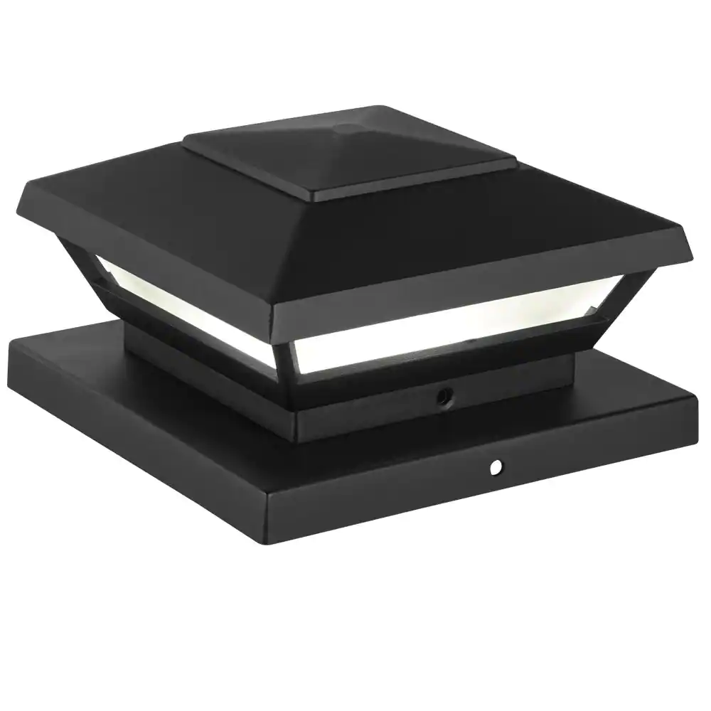 CLASSY CAPS Cambridge 6 in. x 6 in. Outdoor Black LED Solar Post Cap (2-Pack)