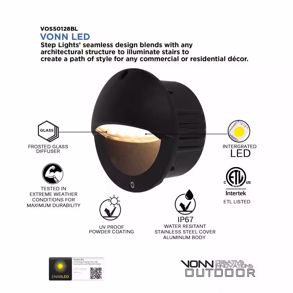 VONN Lighting 3-Watt 5 in. Low Voltage Black Outdoor ETL Certified Integrated LED Step Landscape Path Light 3000K