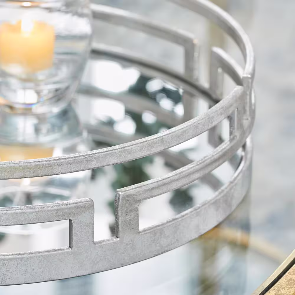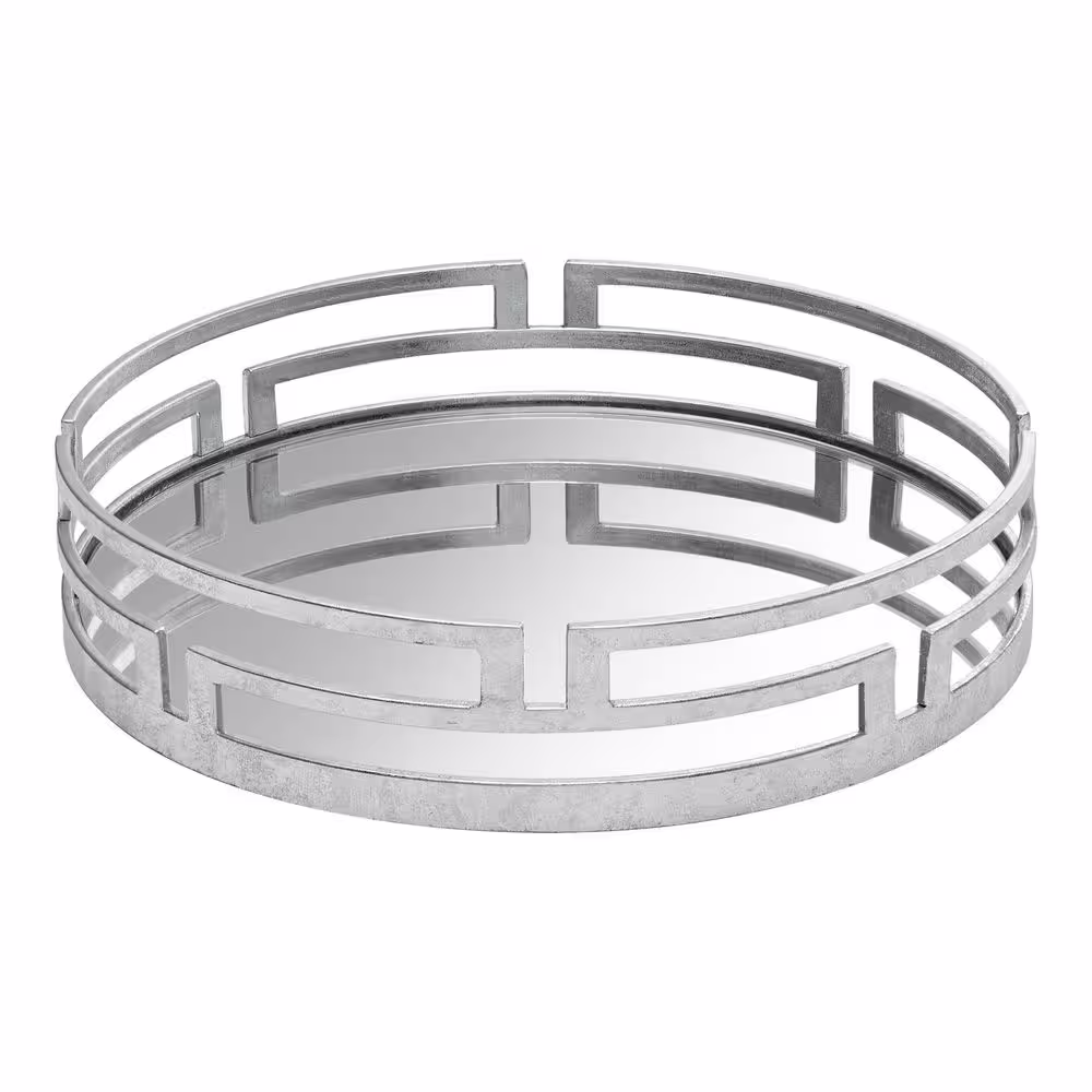 Home Decorators Collection Modern Round Silver Geometric Mirrored Tray (15" Diameter)