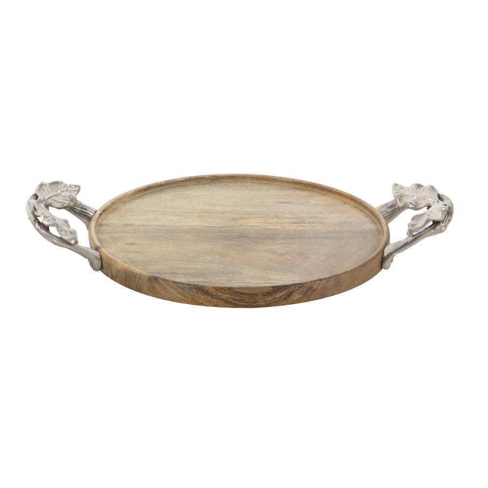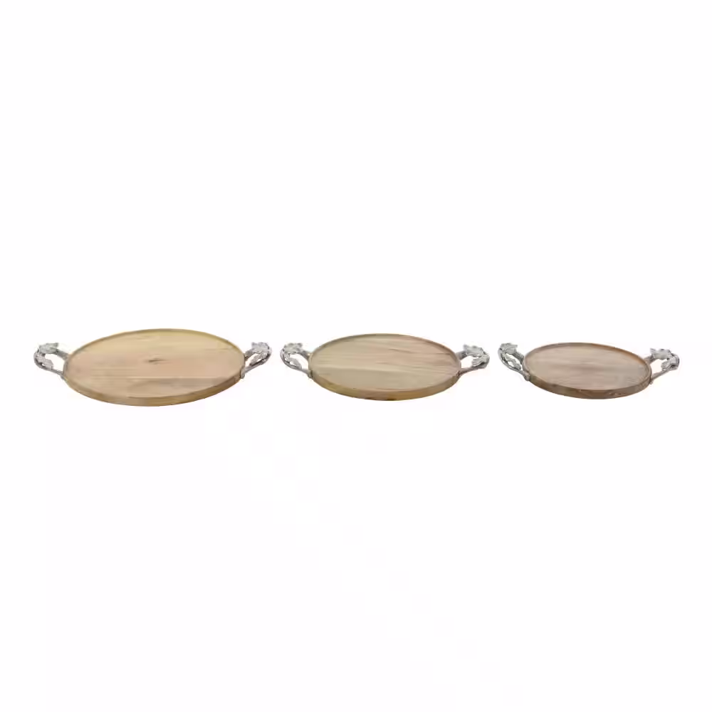 Litton Lane Brown Mango Wood Decorative Tray with Metal Handles (Set of 3)