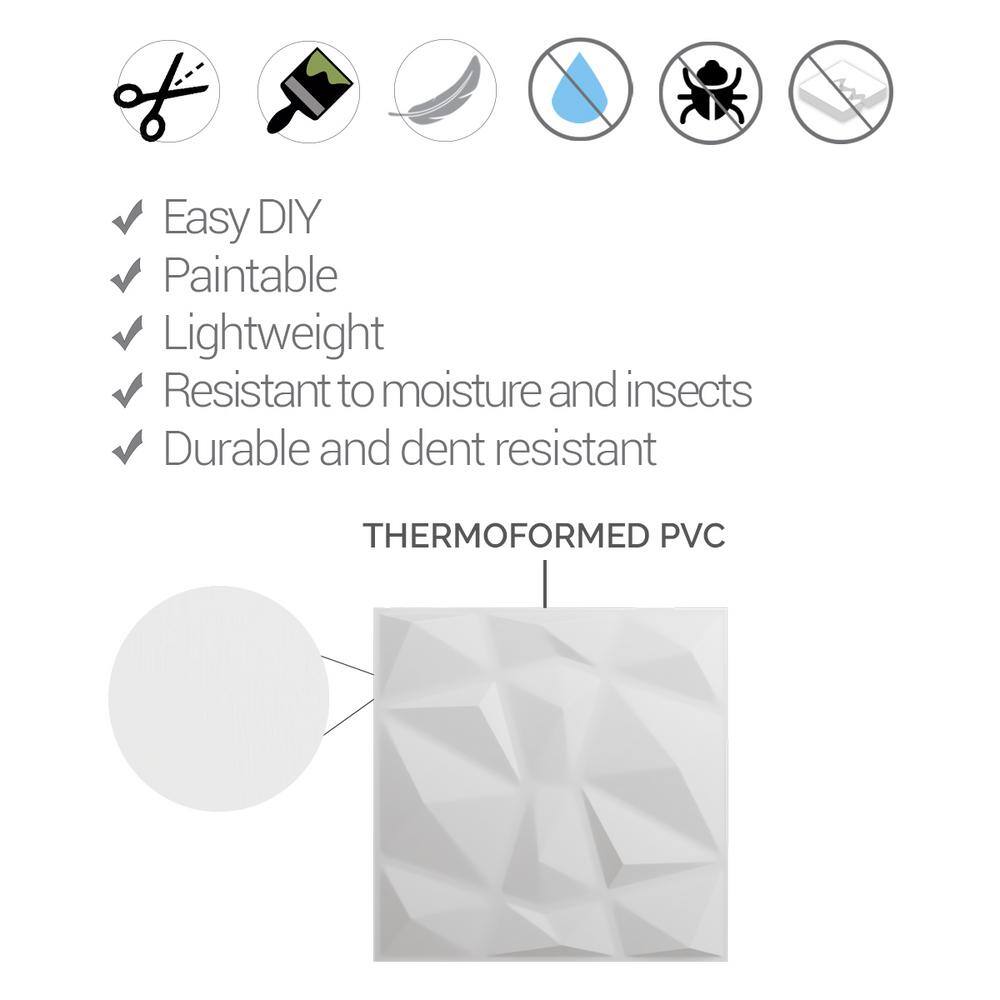 Ekena Millwork 19-5/8"W x 19-5/8"H Billow EnduraWall Decorative 3D Wall Panel, White, (50-Pack for 133.73 Sq.Ft.)