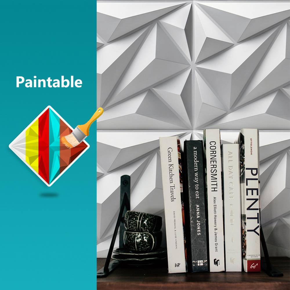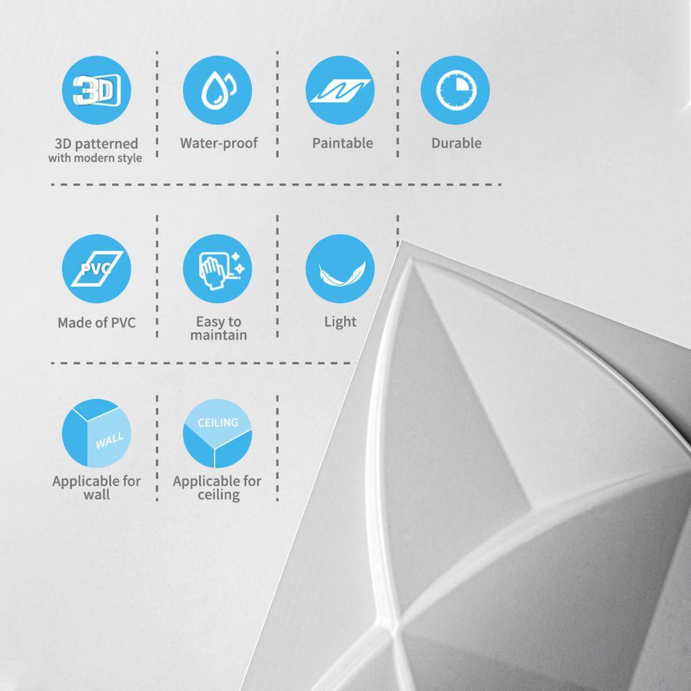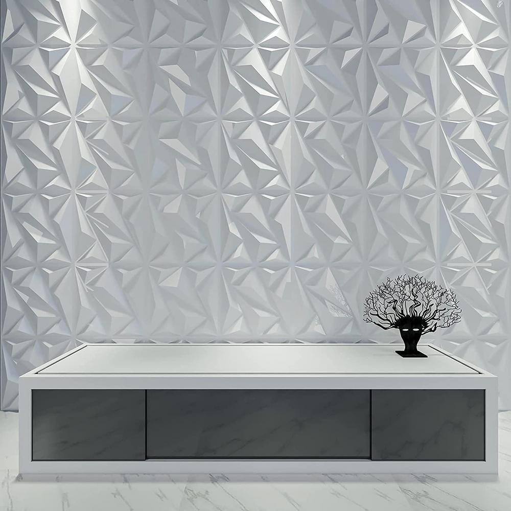 Art3d Decorative Diamond Shape 19.7 in. x 19.7 in. PVC Seamless 3D Wall Panel in White 12-Panels