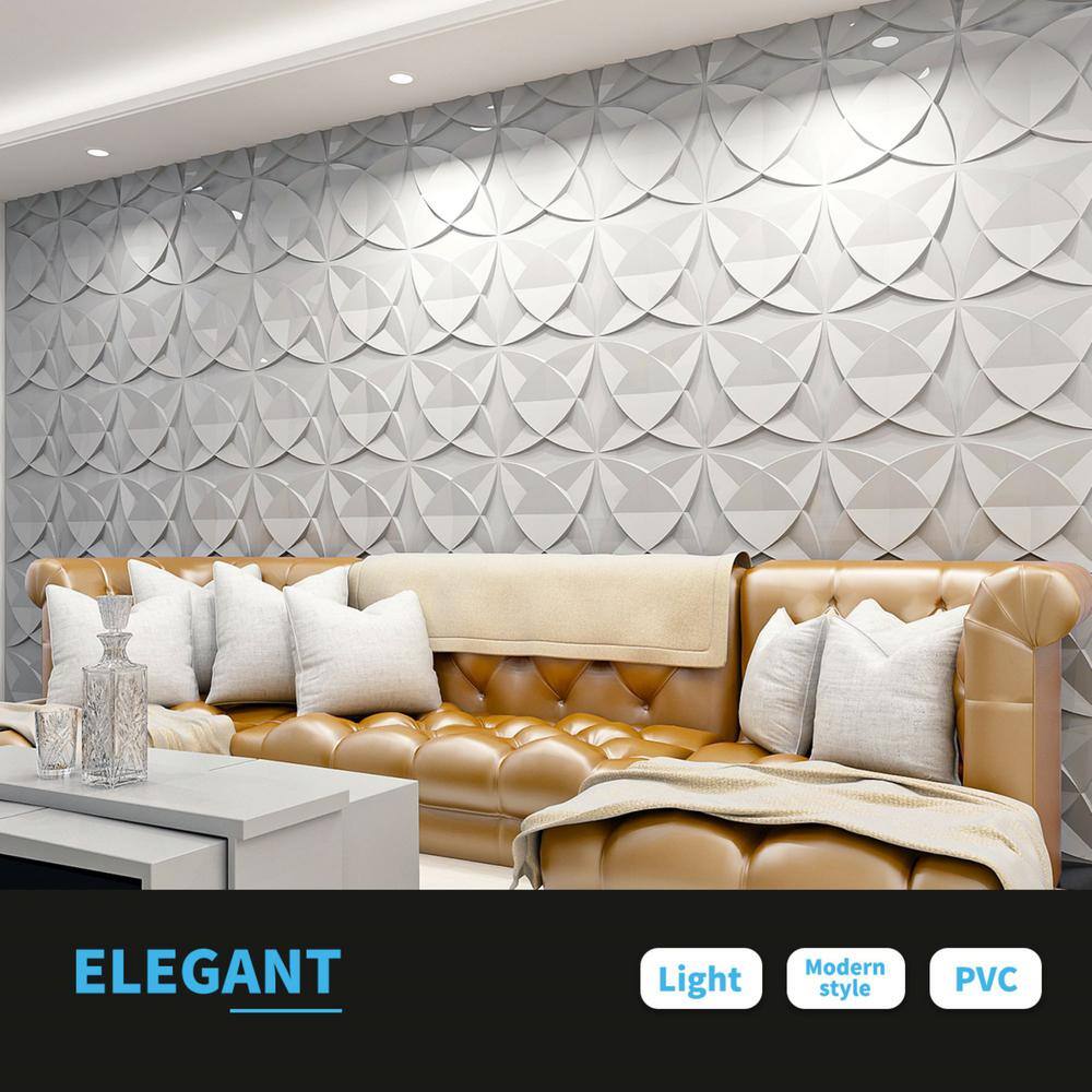Art3dwallpanels 19.7 in x 19.7 in x 1 in PVC Decorative Silver Wall Panel for Living Room (12-Pack)