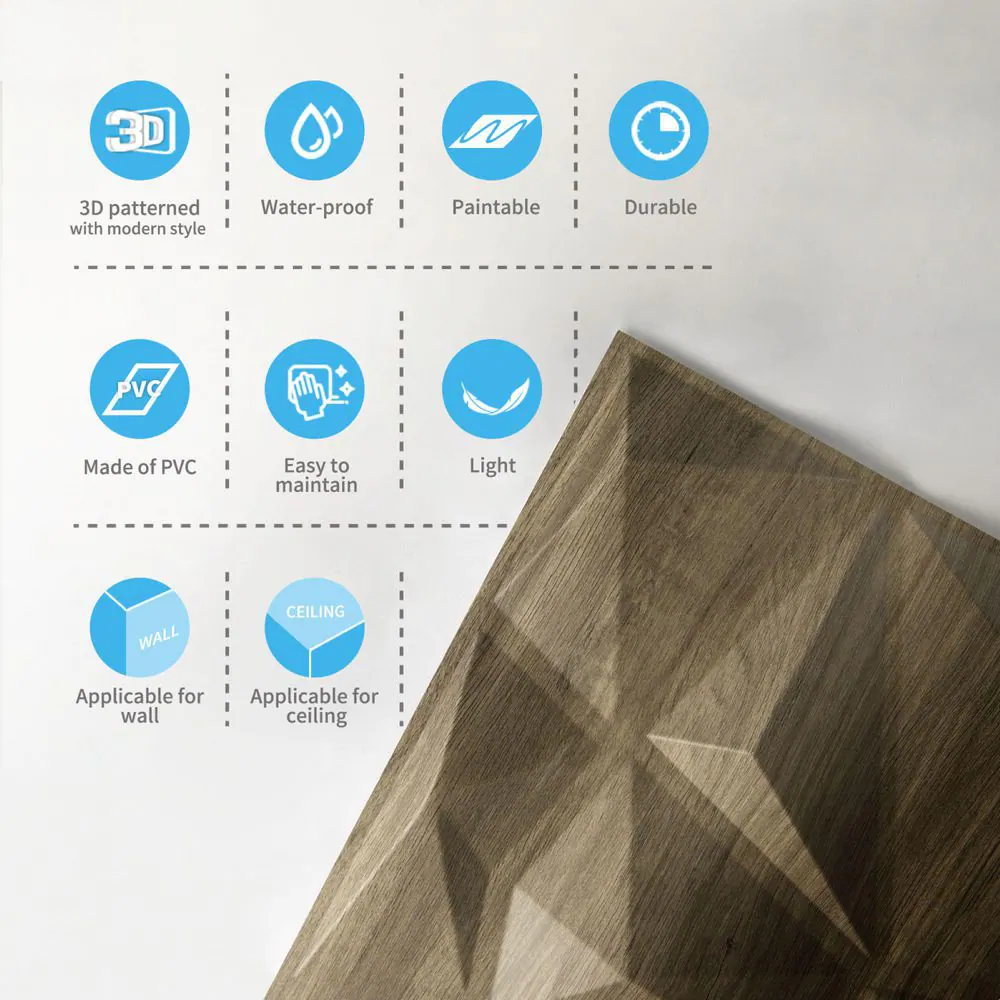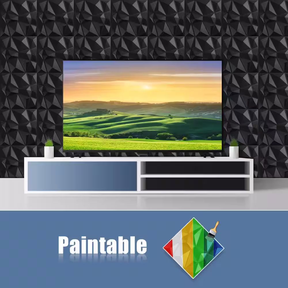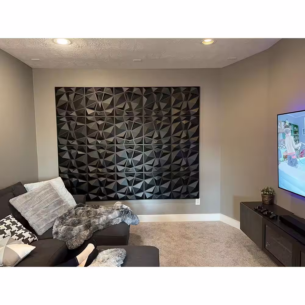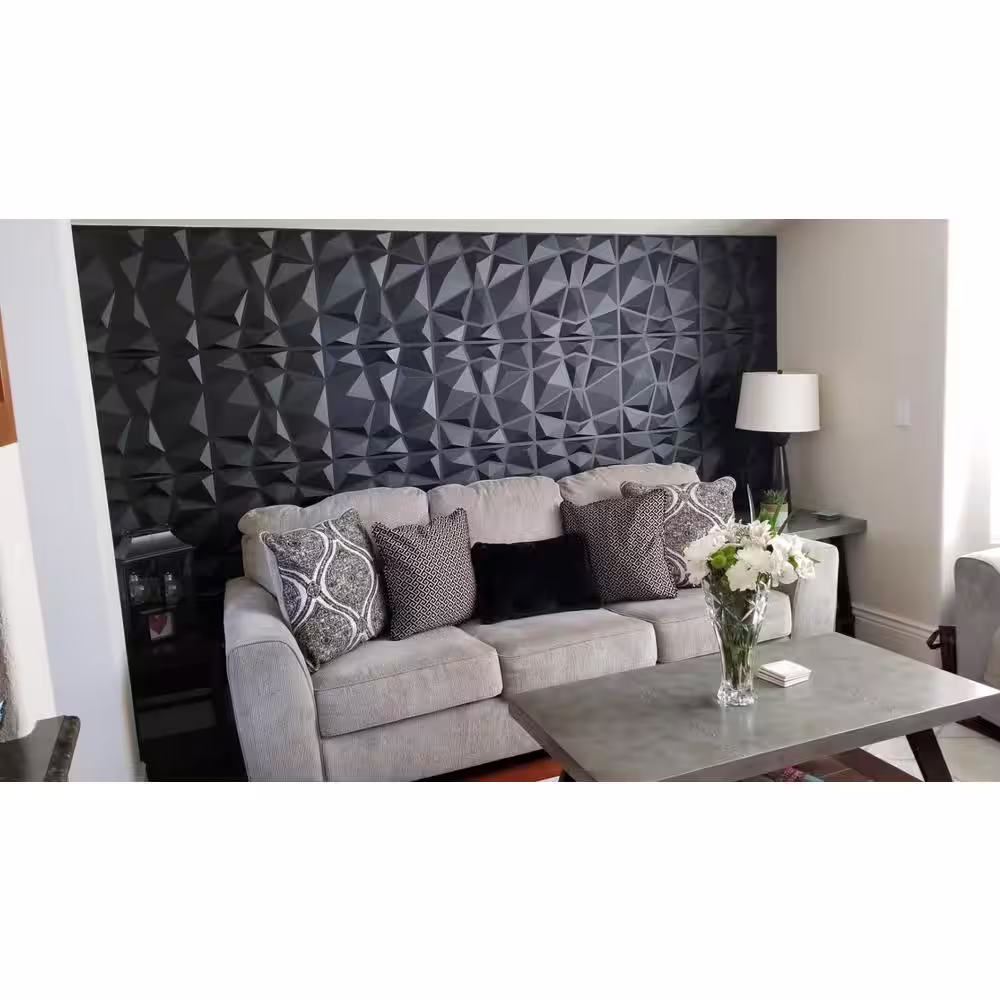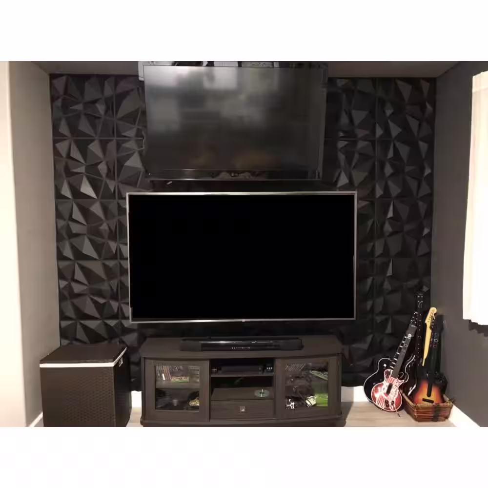 None 1/16 in. x 19.7 in. x 19.7 in. Pure Black Diamond 3D Decorative PVC Wall Panels (12-Sheets/32 sq. ft.)