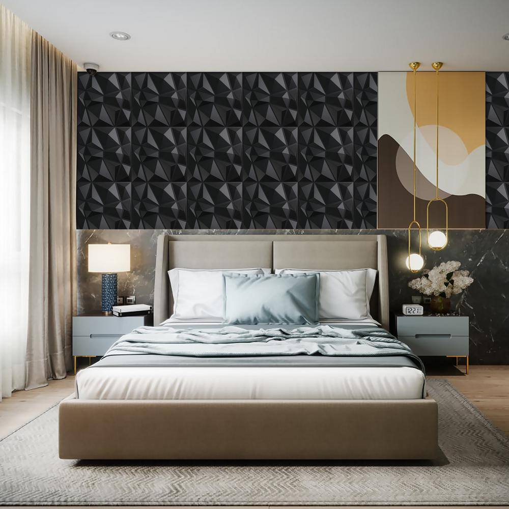 Art3dwallpanels 19.7 in. x 19.7 in. Diamond Black 3D PVC Wall Panels (12-Pack)