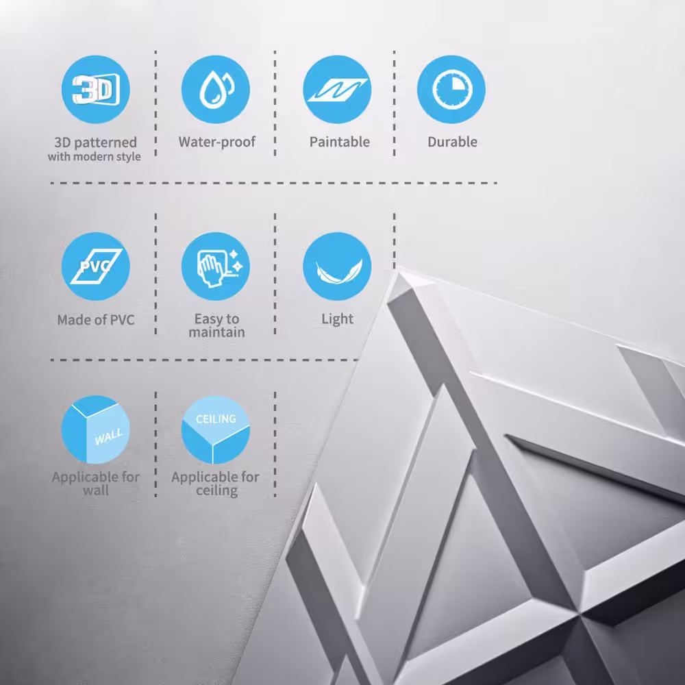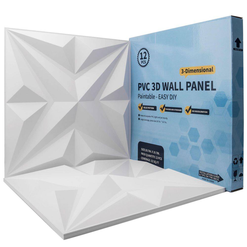 Art3dwallpanels 1/16 in. x 19.7 in. x 19.7 in. White 3D PVC Wall Panel, Decorative Wall Tile in (32 sq. ft./Box)
