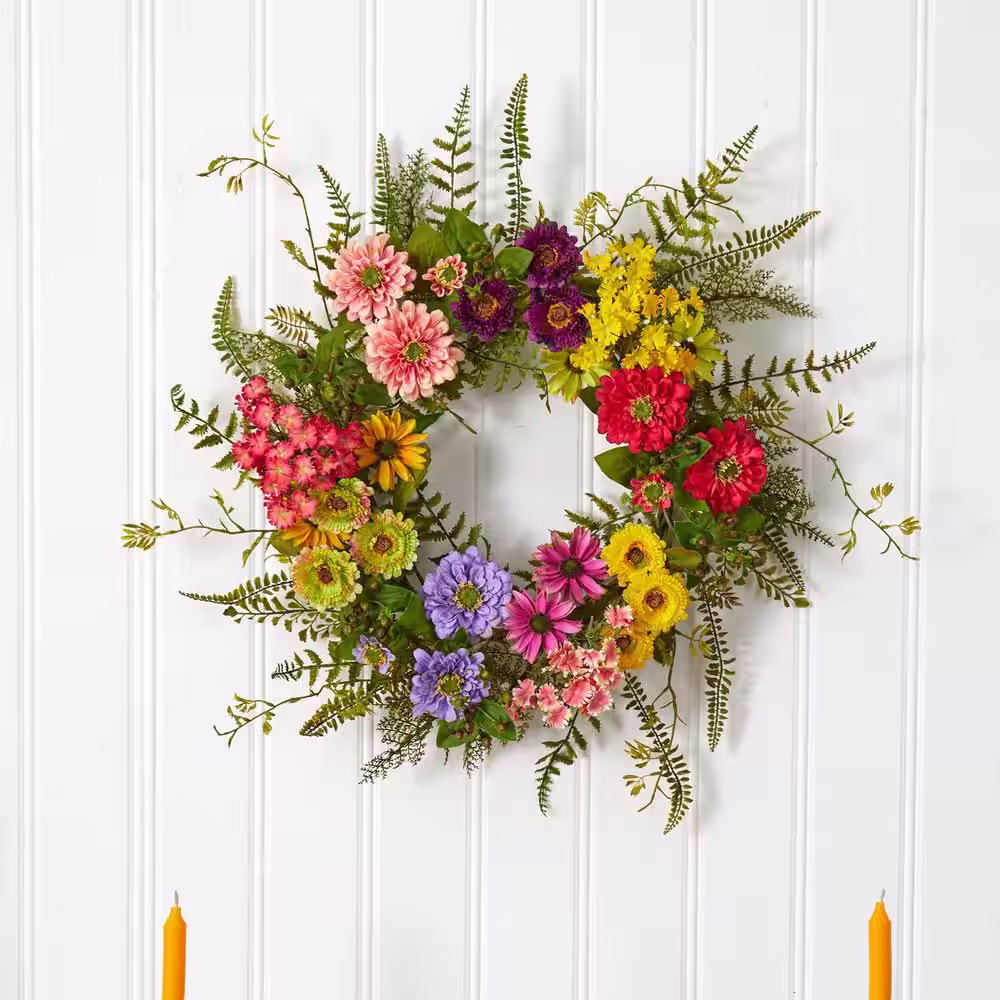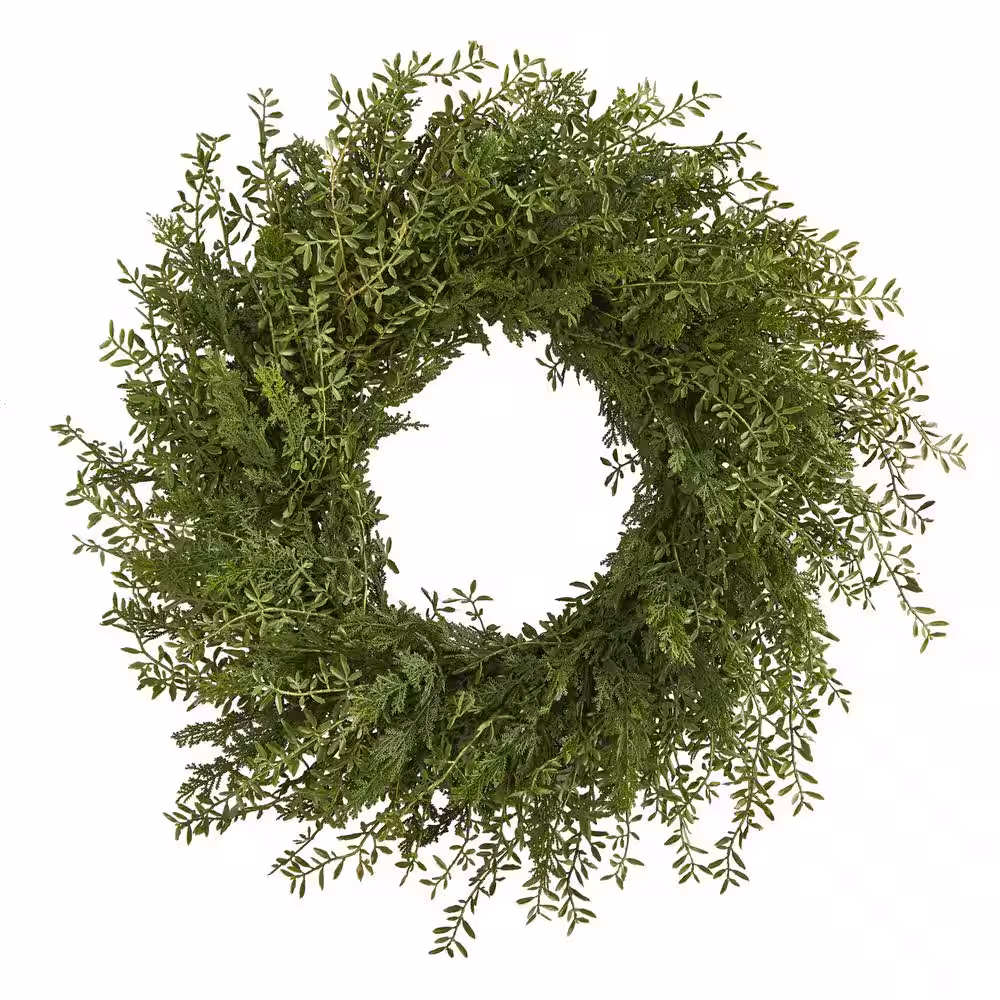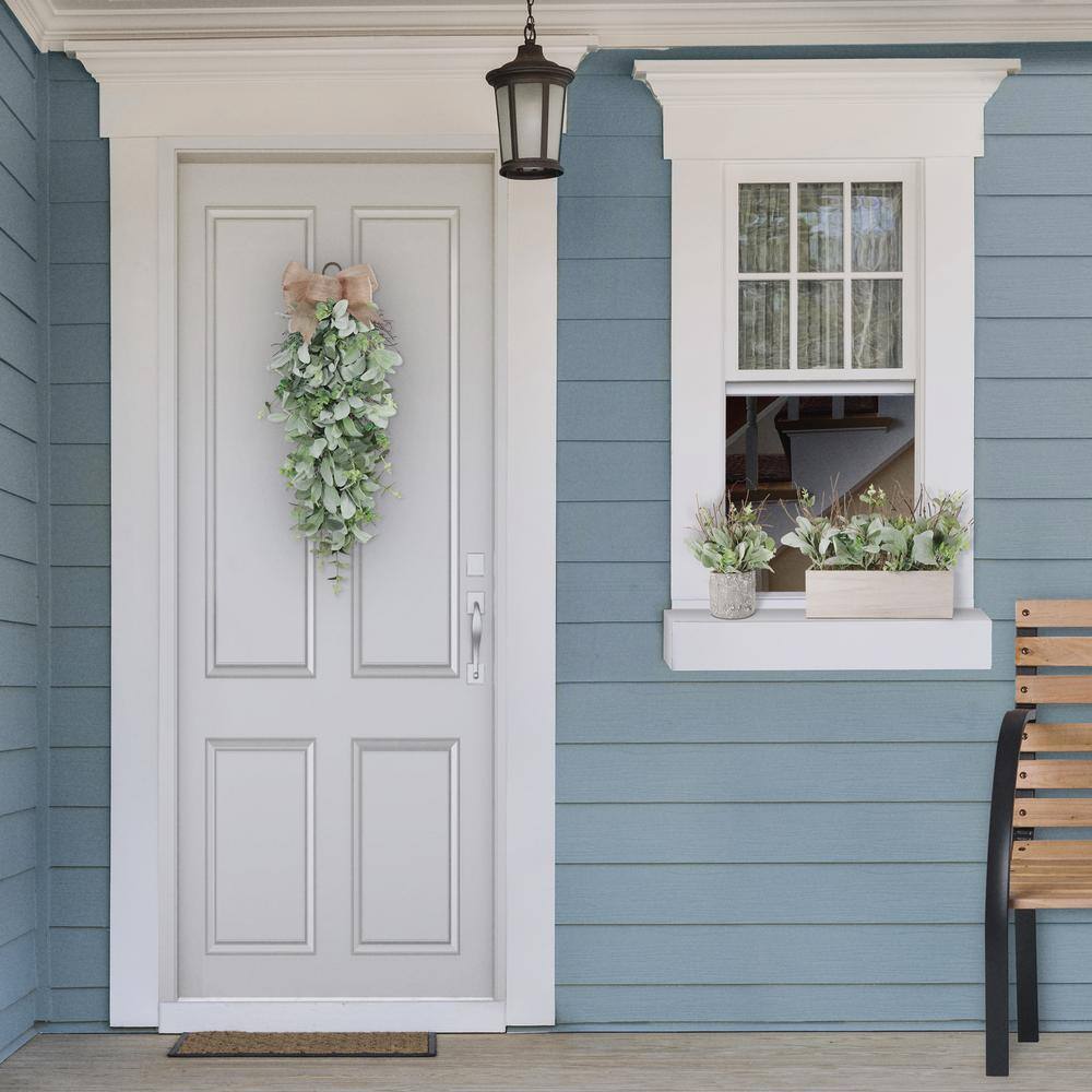 Puleo International 30 in. Front Door Swag with Burlap Bow and Lambs Ear and Greenery Leaves