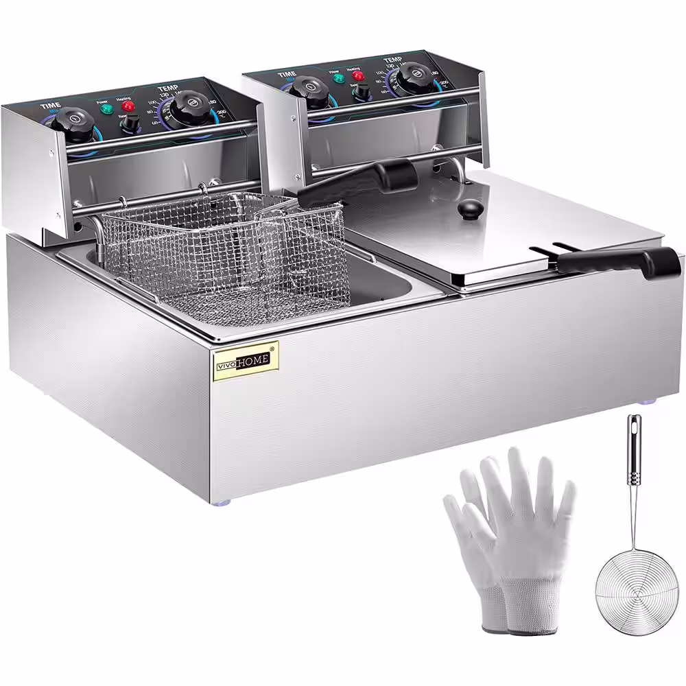 VIVOHOME 20.7 qt. Silver Electric Deep Fryer with 60-Min Timer and Temperature Control