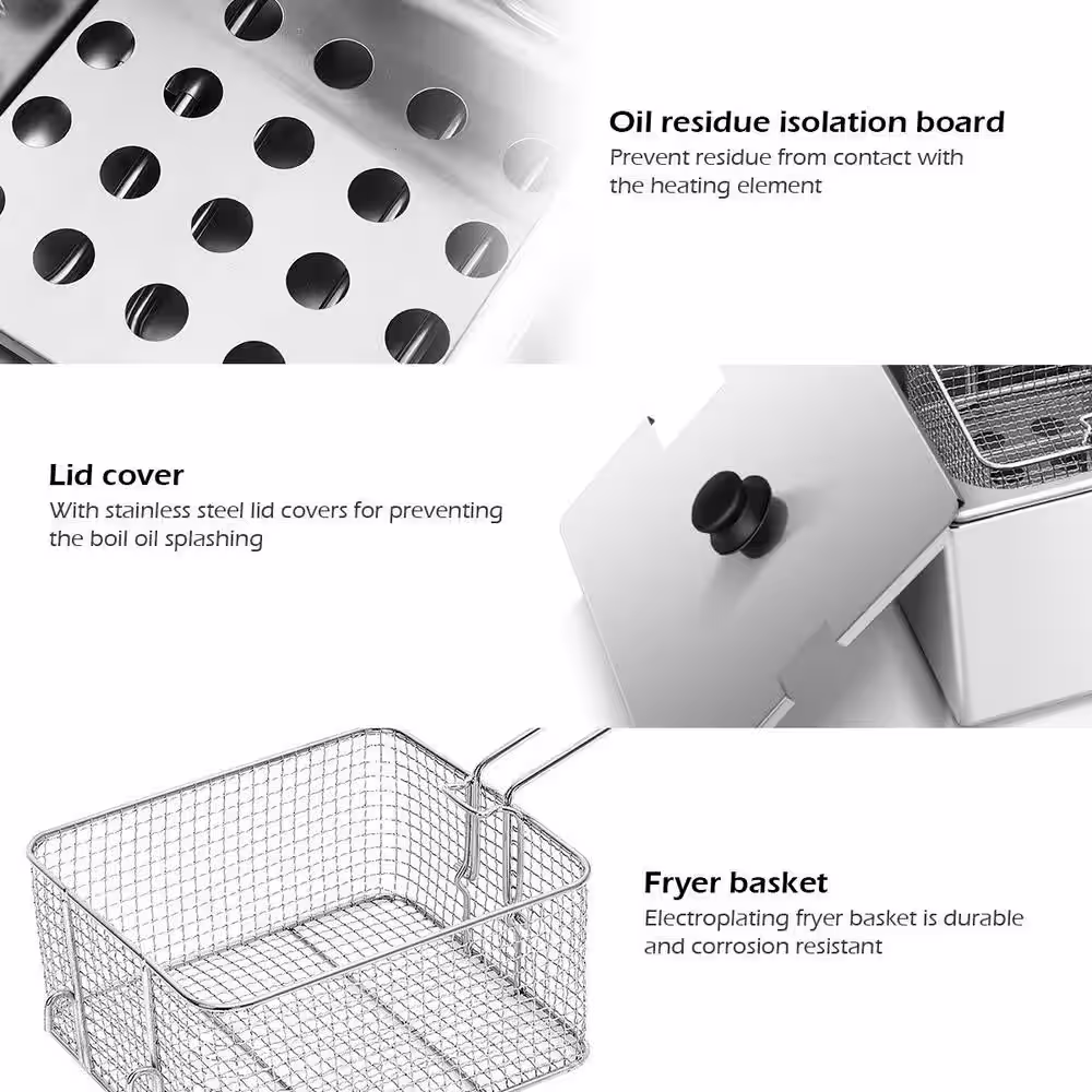 Costway 3400-Watt Electric Countertop Deep Fryer Dual Tank Commercial Restaurant Steel
