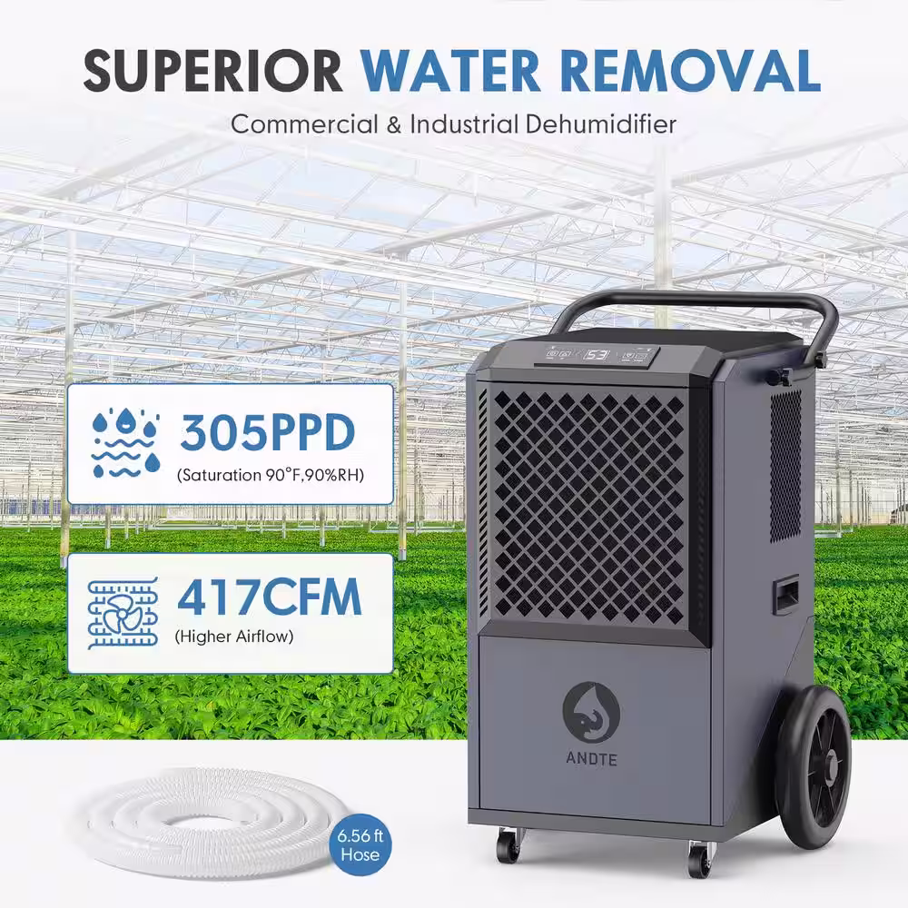 JEREMY CASS 305 pt. 9,000 sq.ft. Bucketless Commercial and Industrial Dehumidifier in Black, NEMA 5-20 Receptacle