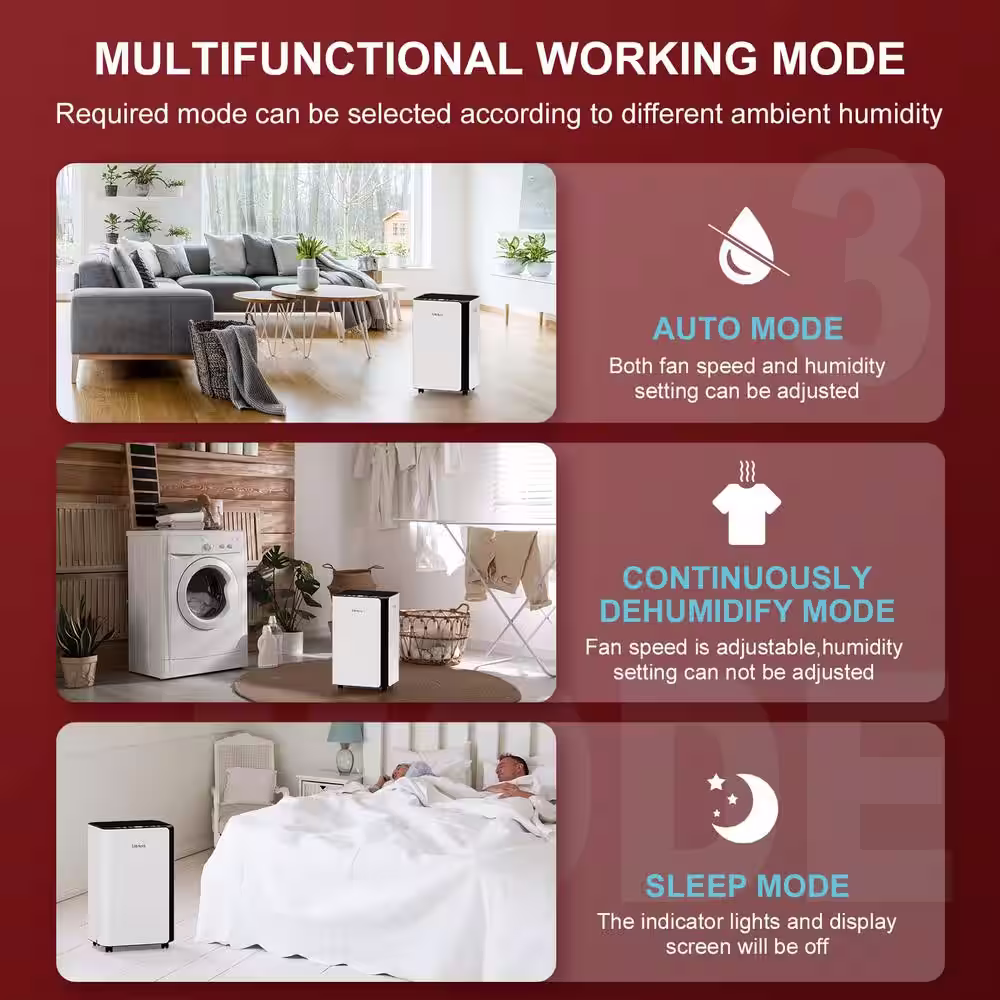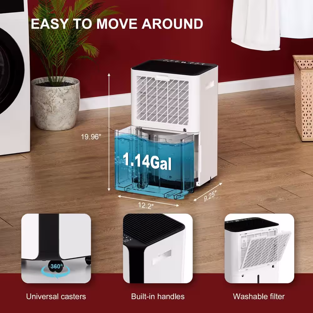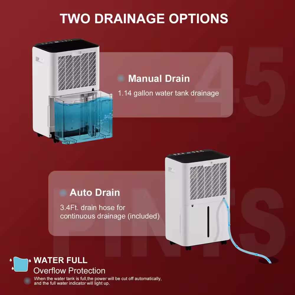 Runesay 45 pt. 4000 sq.ft. Auto Defrost Household Dehumidifier in. White with Drain Hose and Water Tank for Home