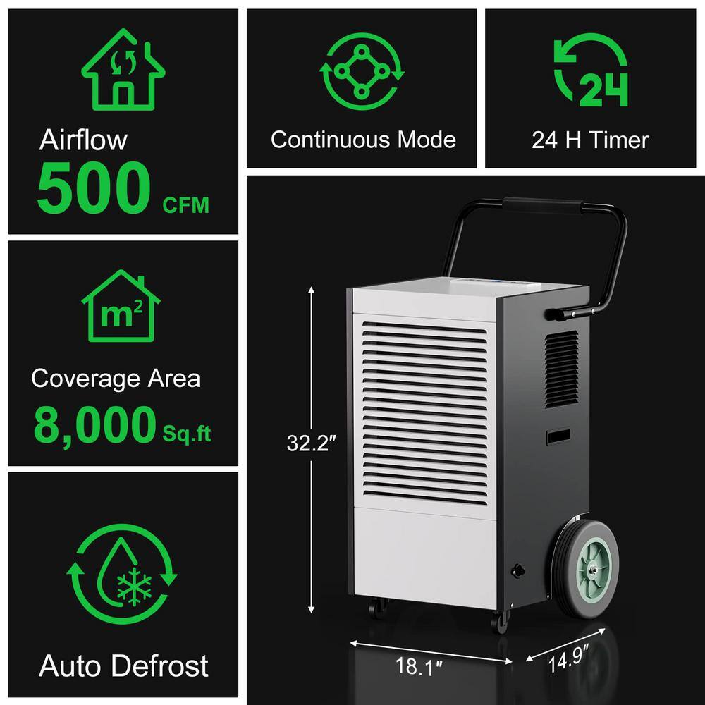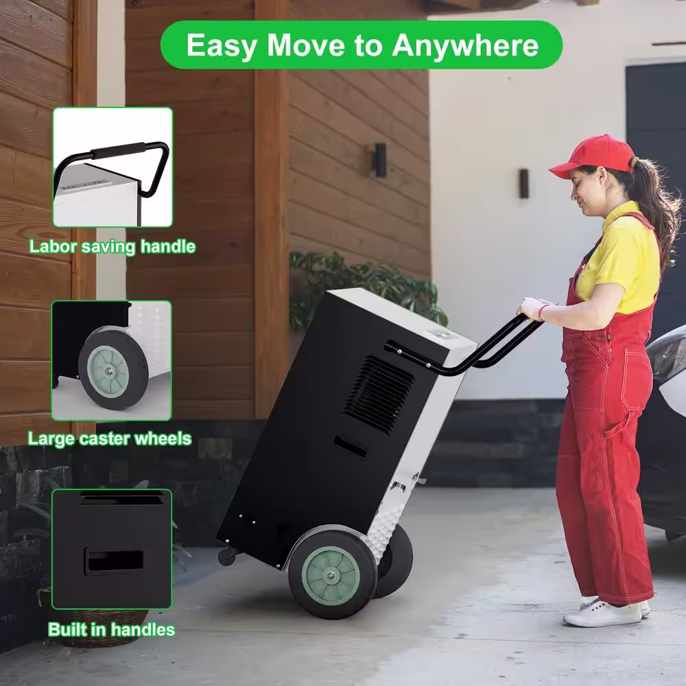 Runesay 225 pt. 8000 sq.ft. Industrial Commercial Dehumidifier in. Blacks with Handles and Wheels for Large Space