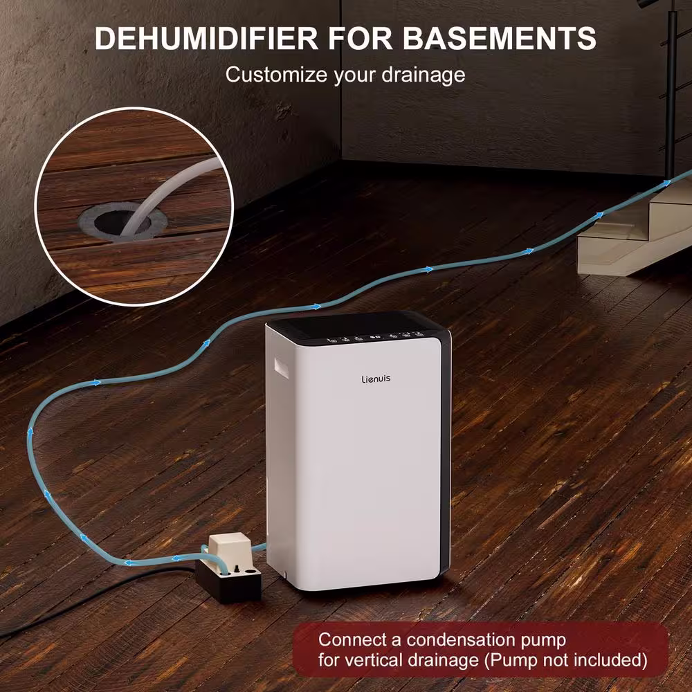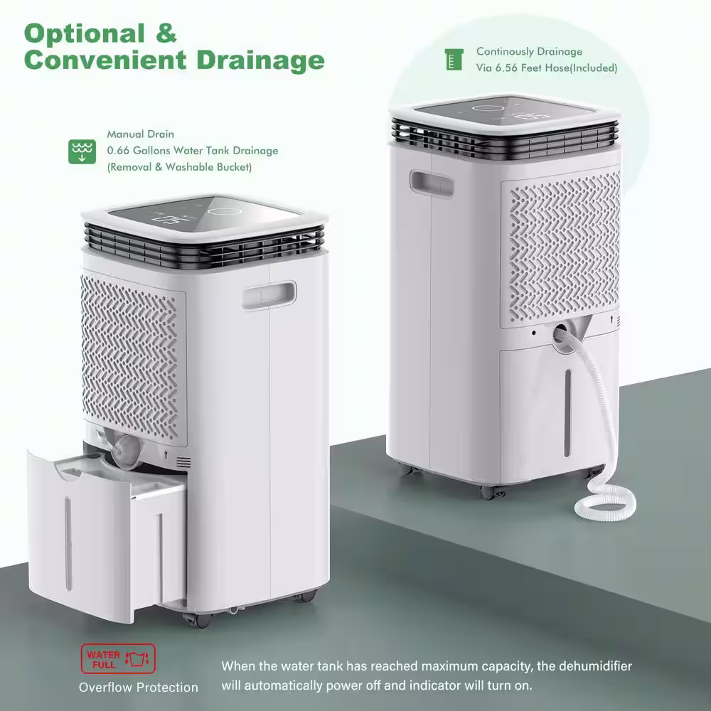 KESNOS 34-Pint Capacity Home Smart Dehumidifier With Bucket And Drain for up to 2500 sq. ft. Indoor, White