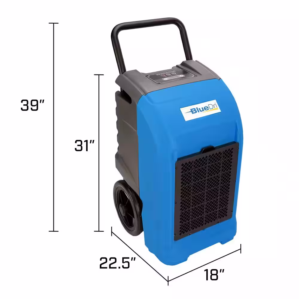 BlueDri 150-Pint Commercial Dehumidifier in Blue for Water Damage Restoration Mold Remediation
