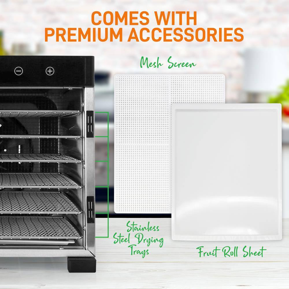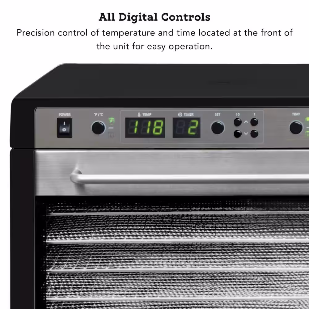 CHEFWAVE 10 Tray Food Dehydrator with Stainless Steel Racks, Temp + Time Control