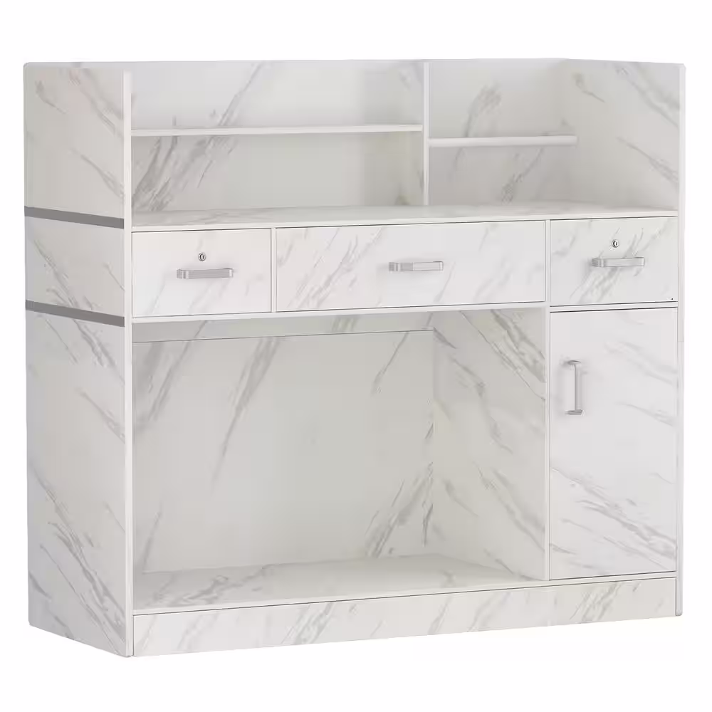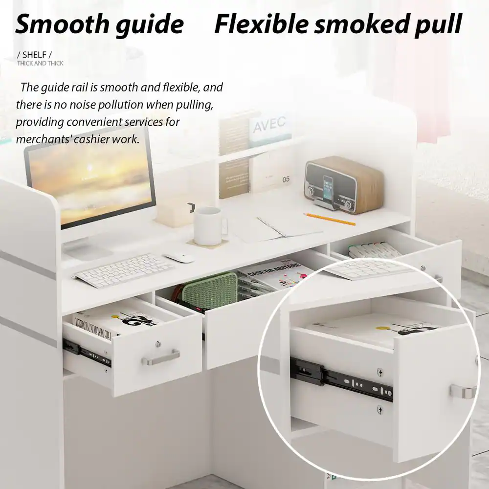 SAINT BIRCH Olivia 59.5 in. Gray Oak and White Wood 4-Drawer Writing Desk