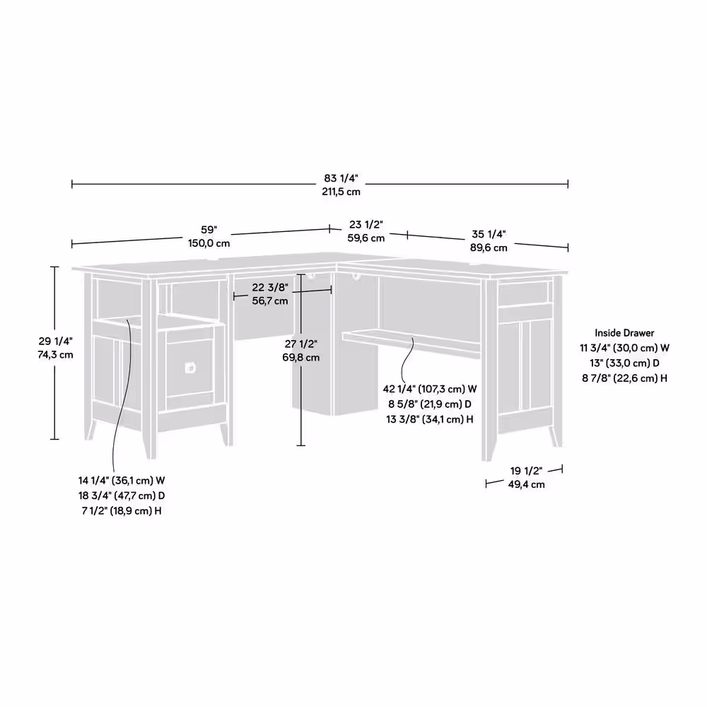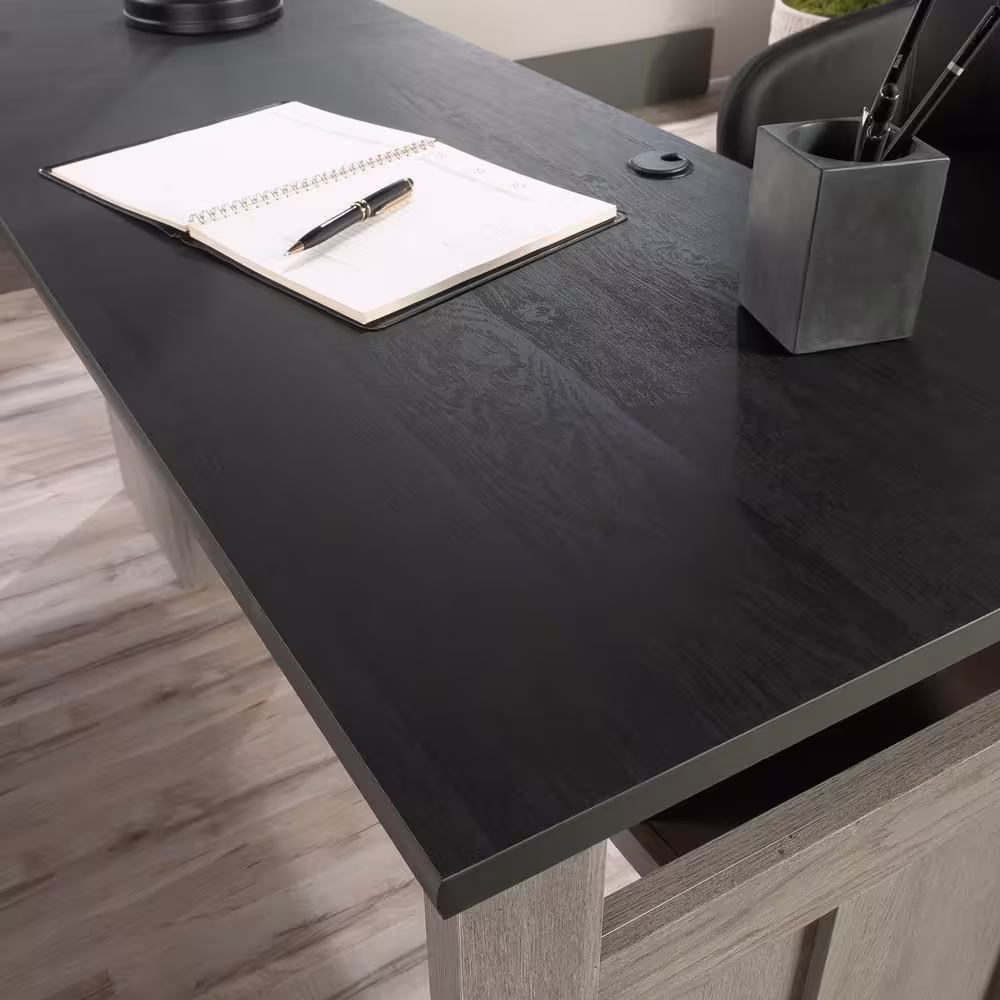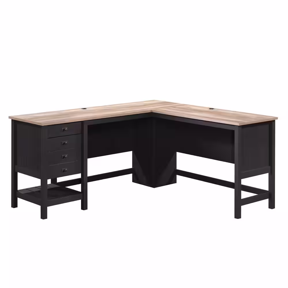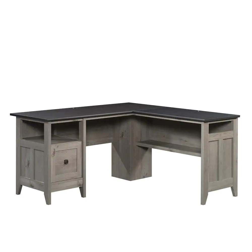 SAUDER Cottage Road 65.118 in. L-Shape Raven Oak Computer Desk with File Storage