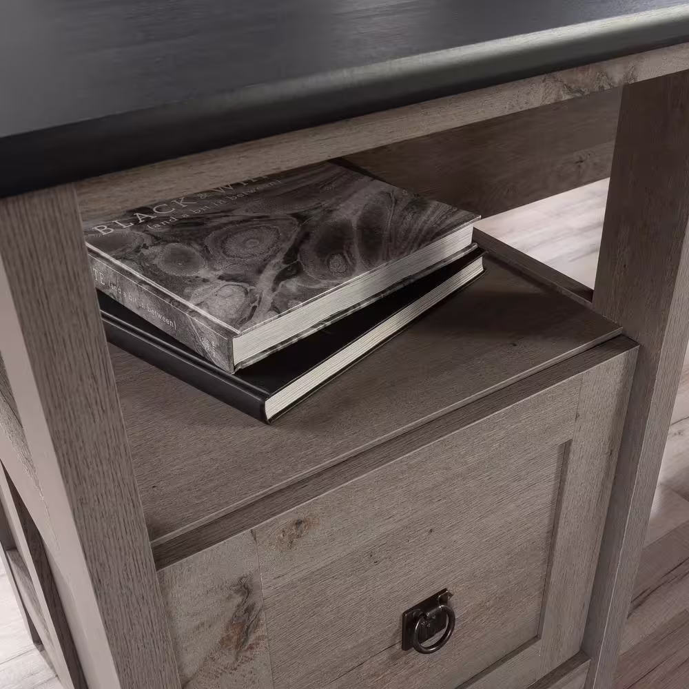 SAUDER Briarbrook 60 in. Barrel Oak Computer Desk with File Storage and Metal Frame