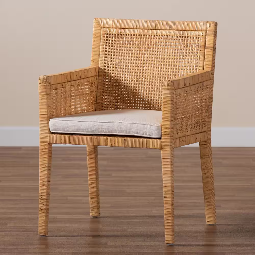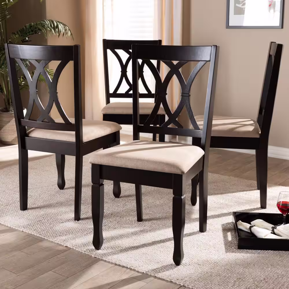 Baxton Studio Reneau Sand Brown and Espresso Fabric Dining Chair (Set of 4)