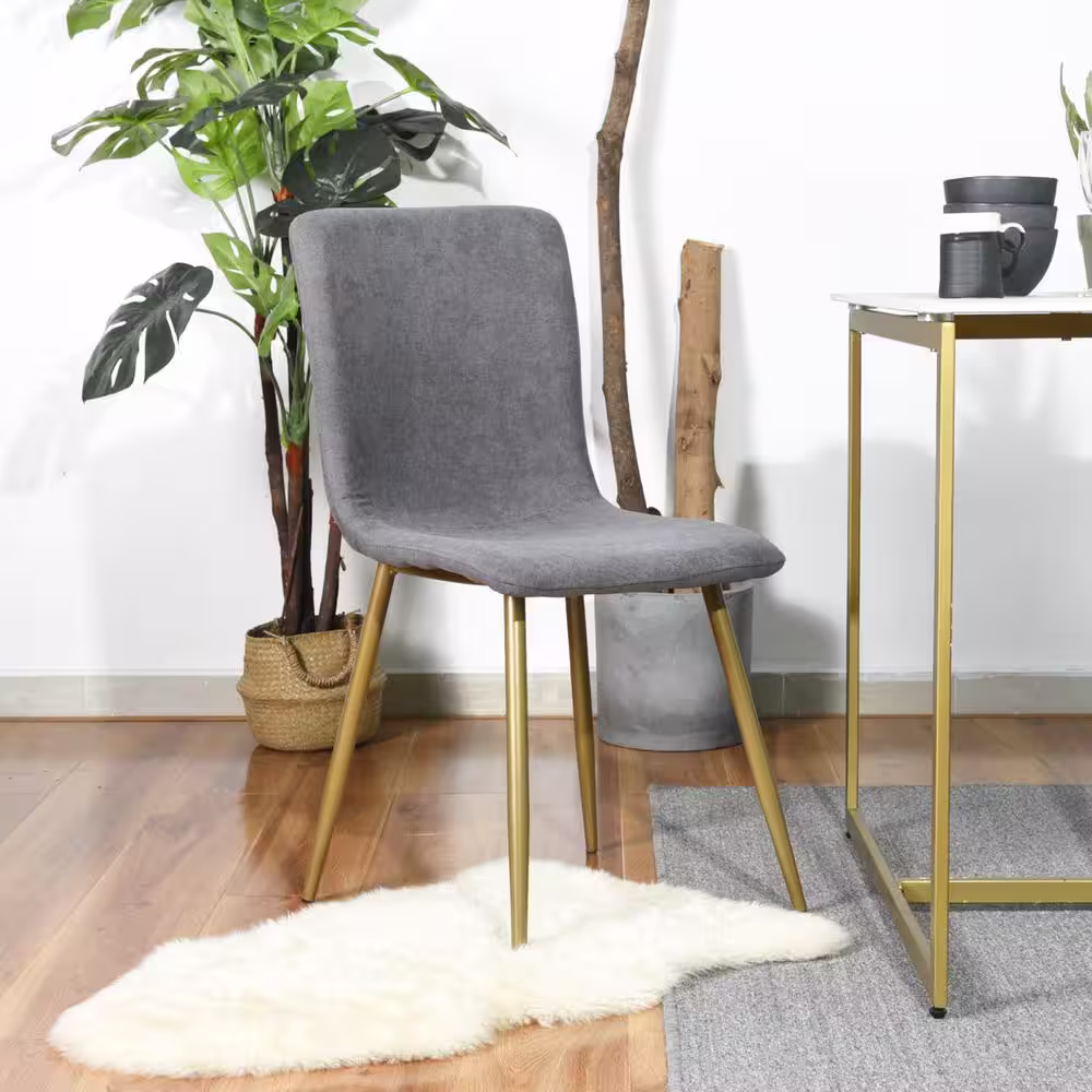 Homepop Channeled Sustainable Gray Woven Upholstery Metal Dining Chair