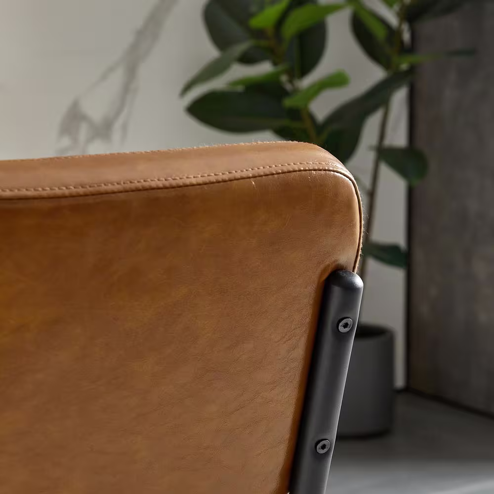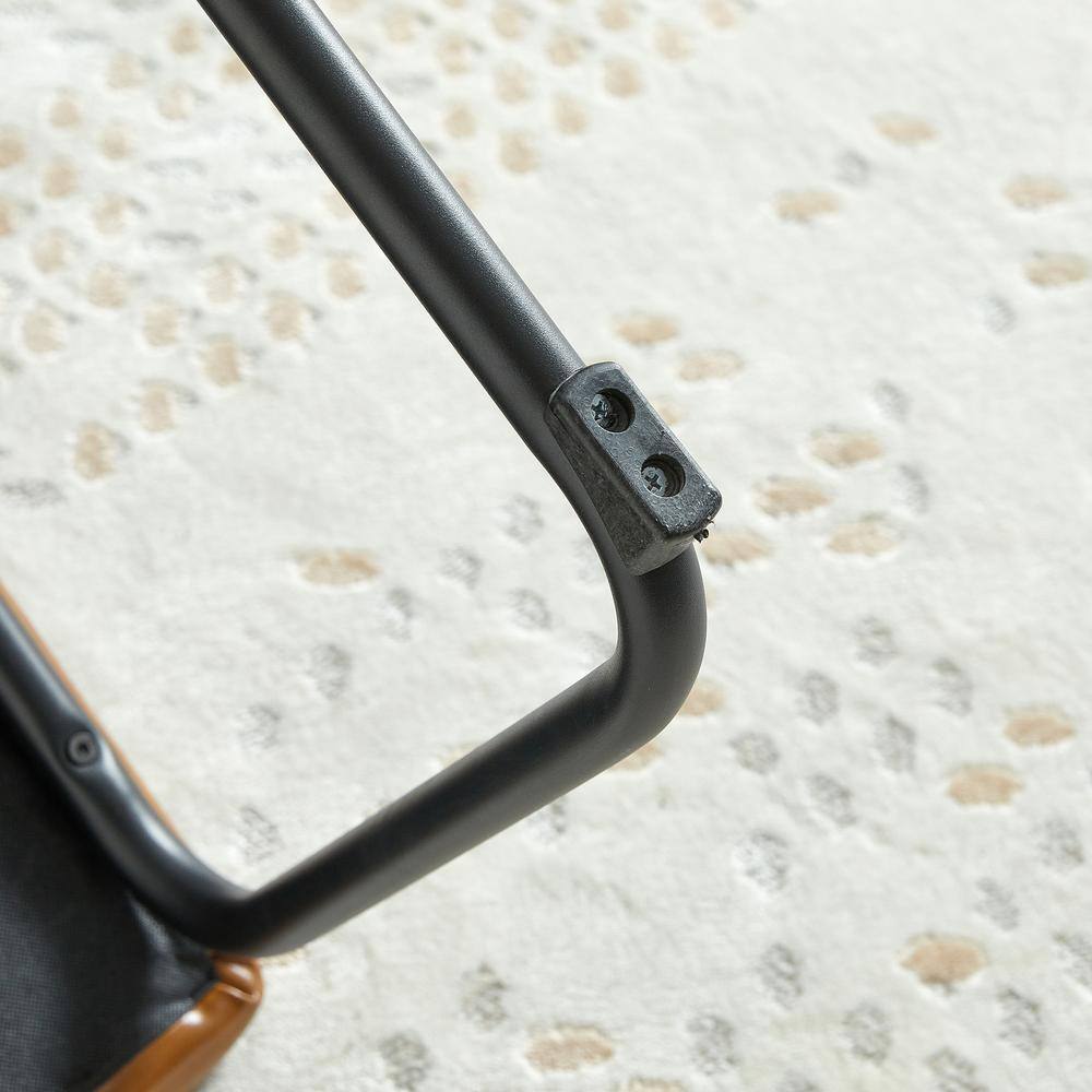 None Set of 4-Modern Mid Century Brown PU Leather Upholstered Armless Dining Chair with Black Metal Pipe Legs