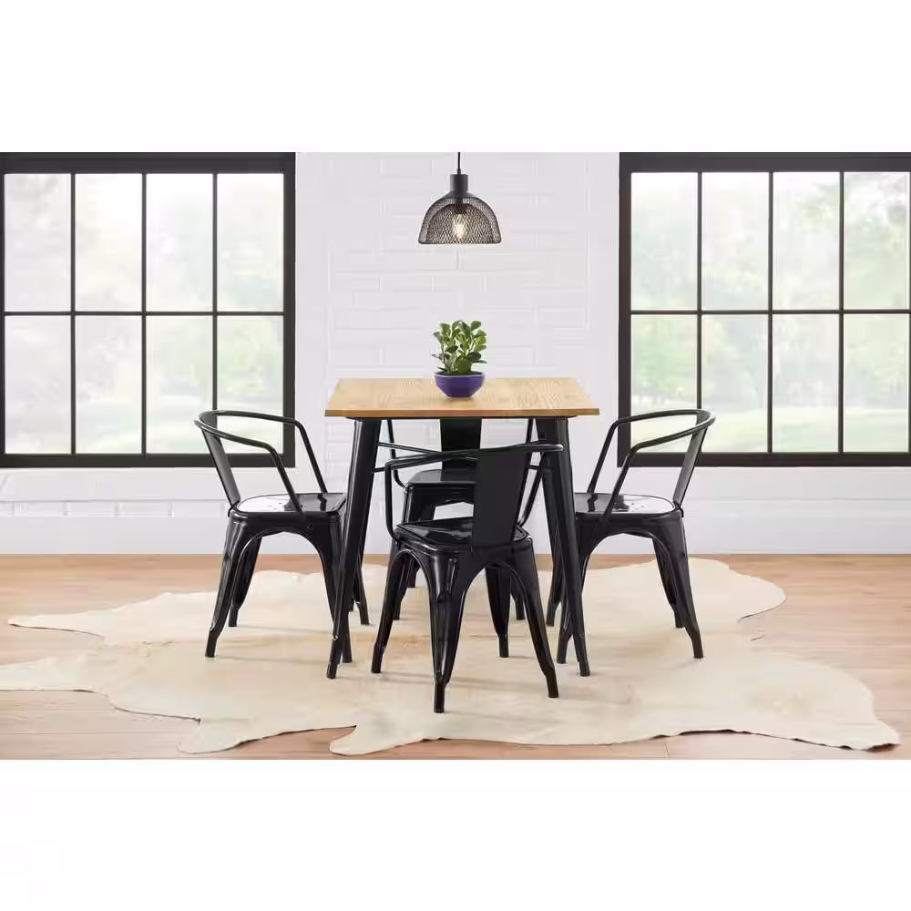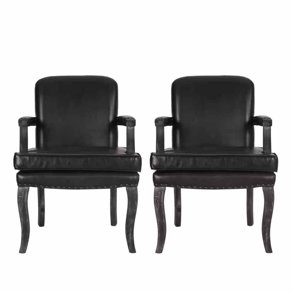 Noble House Ardson Midnight Black and Gray Faux Leather Dining Arm Chairs (Set of 2)