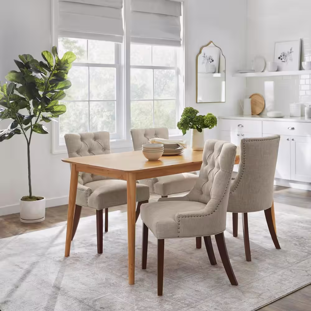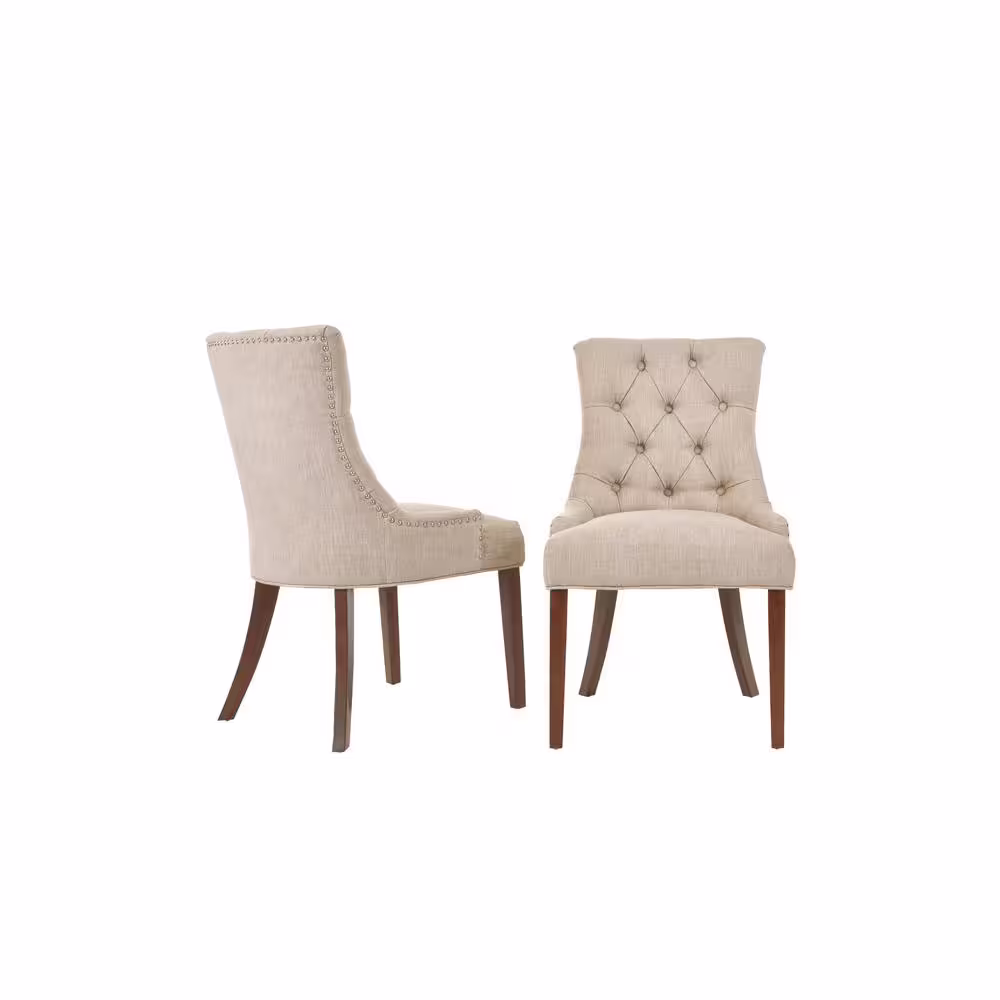 StyleWell Bakerford Biscuit Beige Upholstered Dining Chair with Tufted Back (Set of 2)