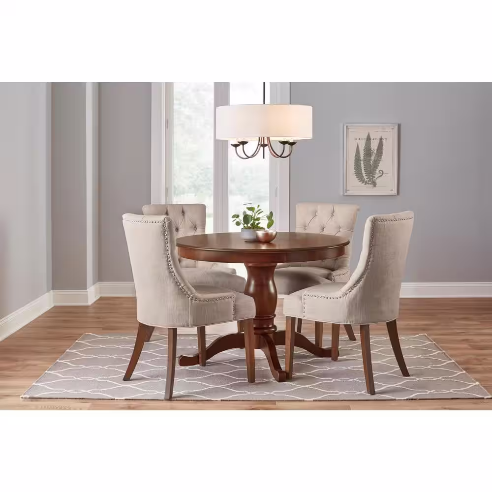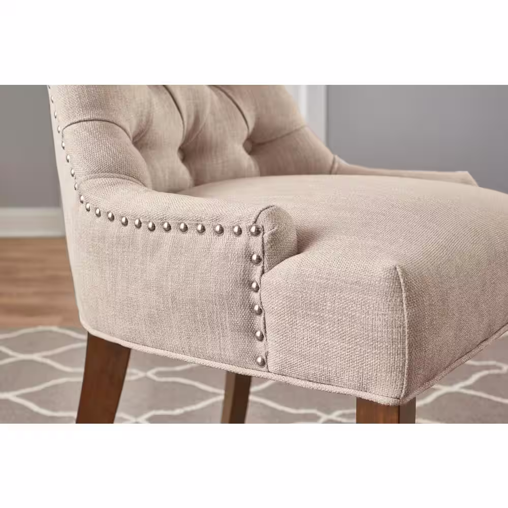 Home Decorators Collection Leaham Biscuit Beige Upholstered Dining Chairs with Walnut Accents (Set of 2)