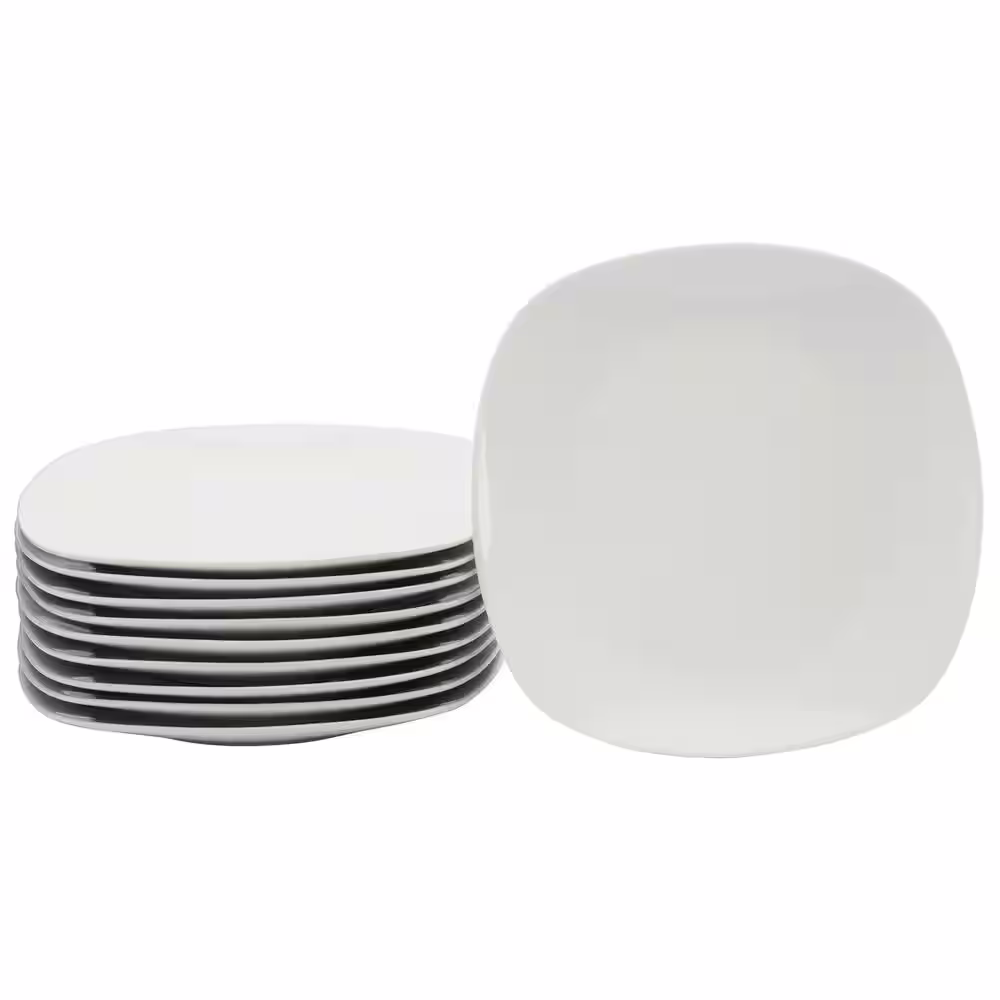 None Bazaar Brown 4-Piece 8.5 in. Soft Square Stoneware Salad Plate Set in Brown