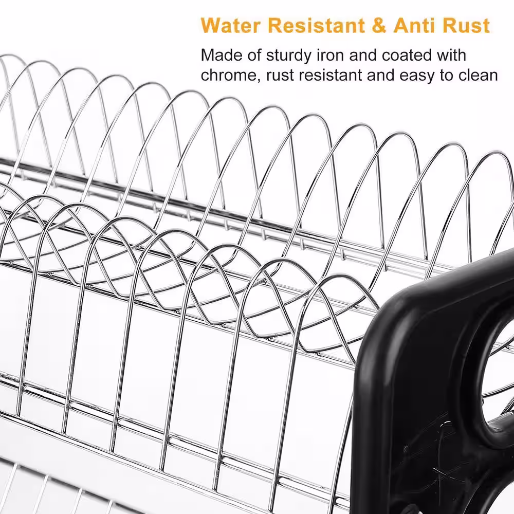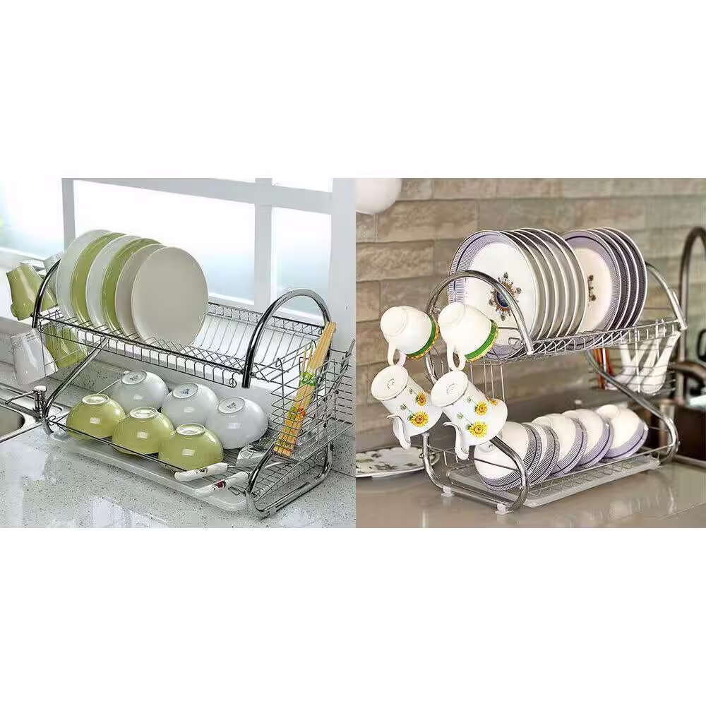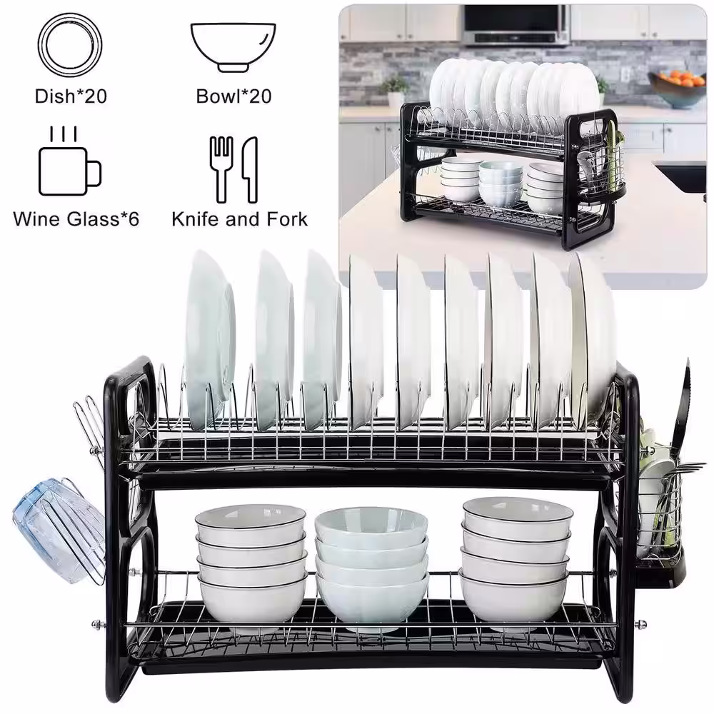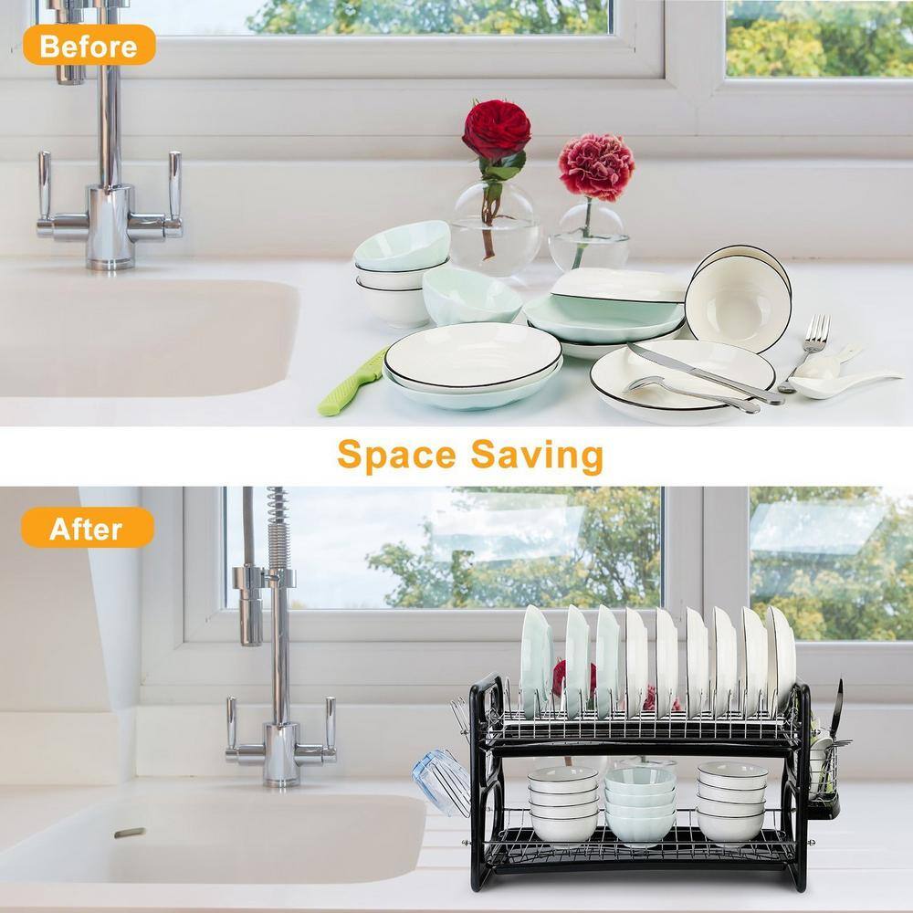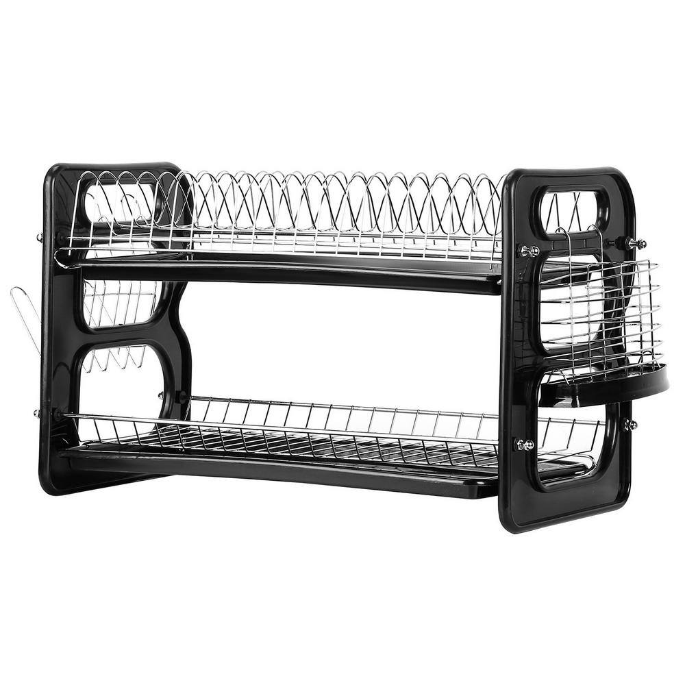 None 2-Tier Dish Rack Set Anti-Rust Dish Drainer Shelf Tableware Holder Cup Holder For Kitchen Counter Storage