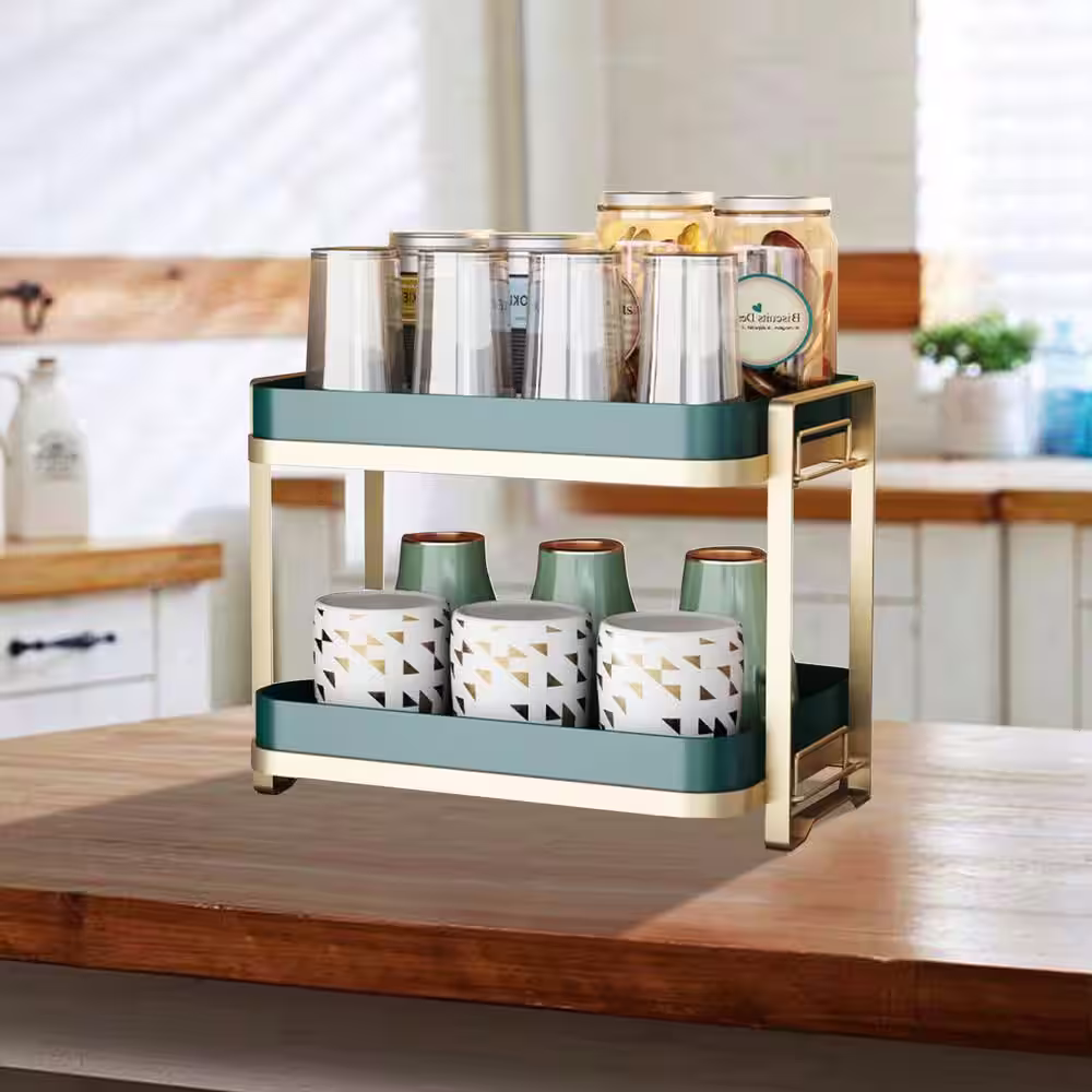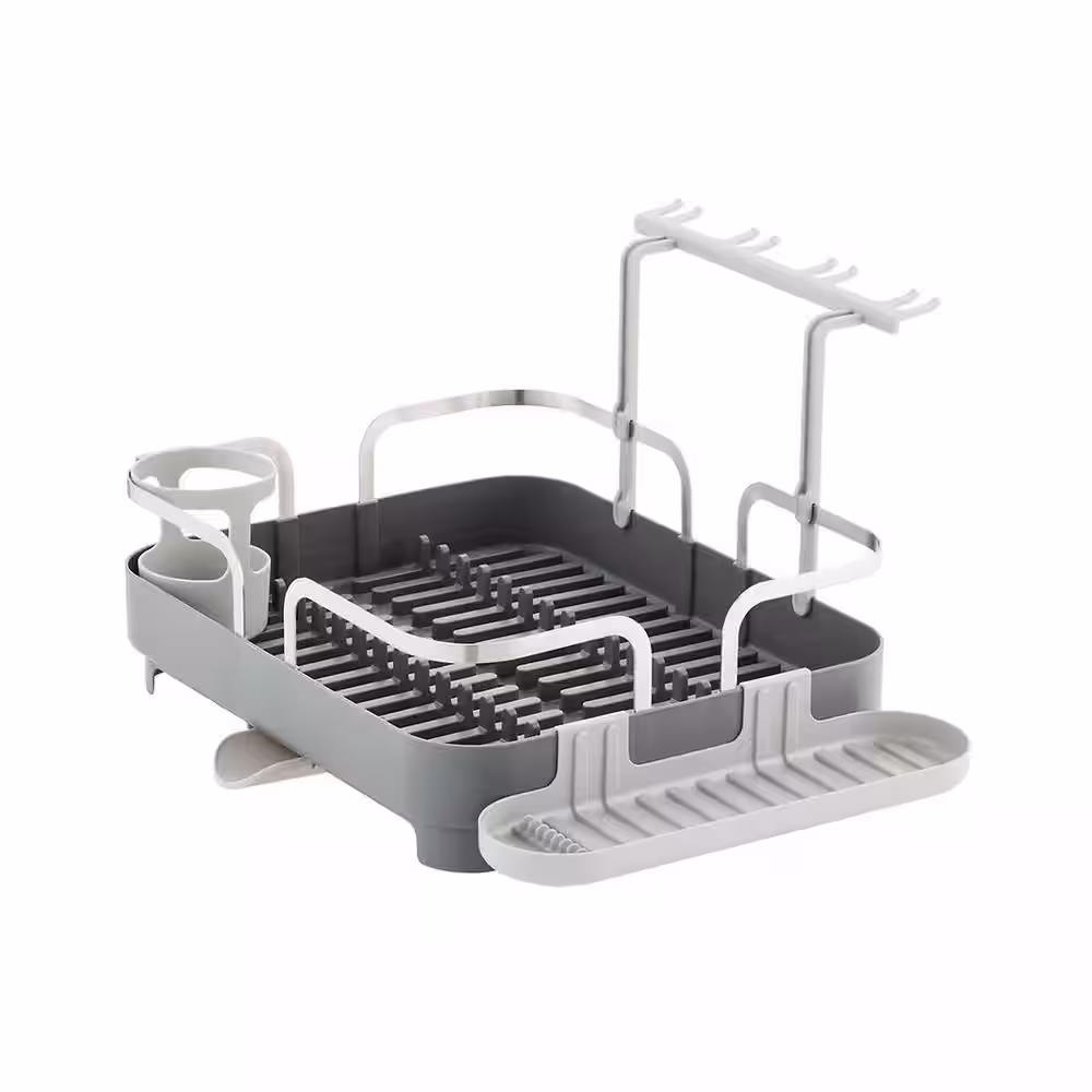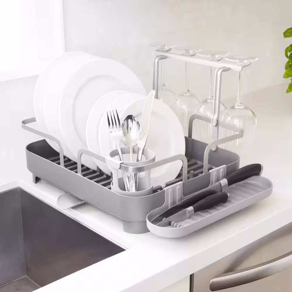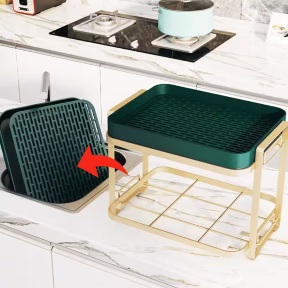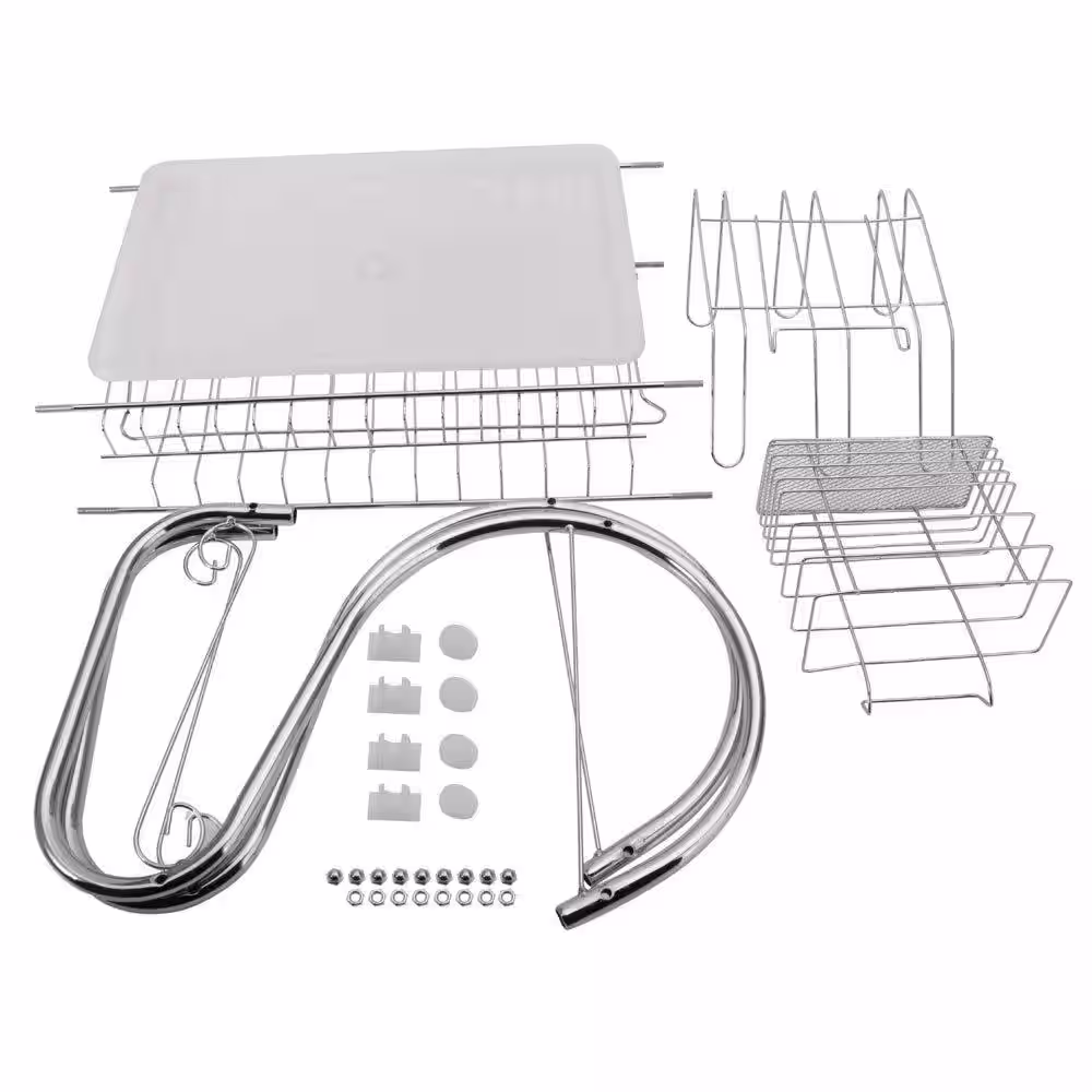 None 2-Tier Dish Rack Set Anti-Rust Dish Drainer Shelf Tableware Holder Cup Holder For Kitchen Counter Storage