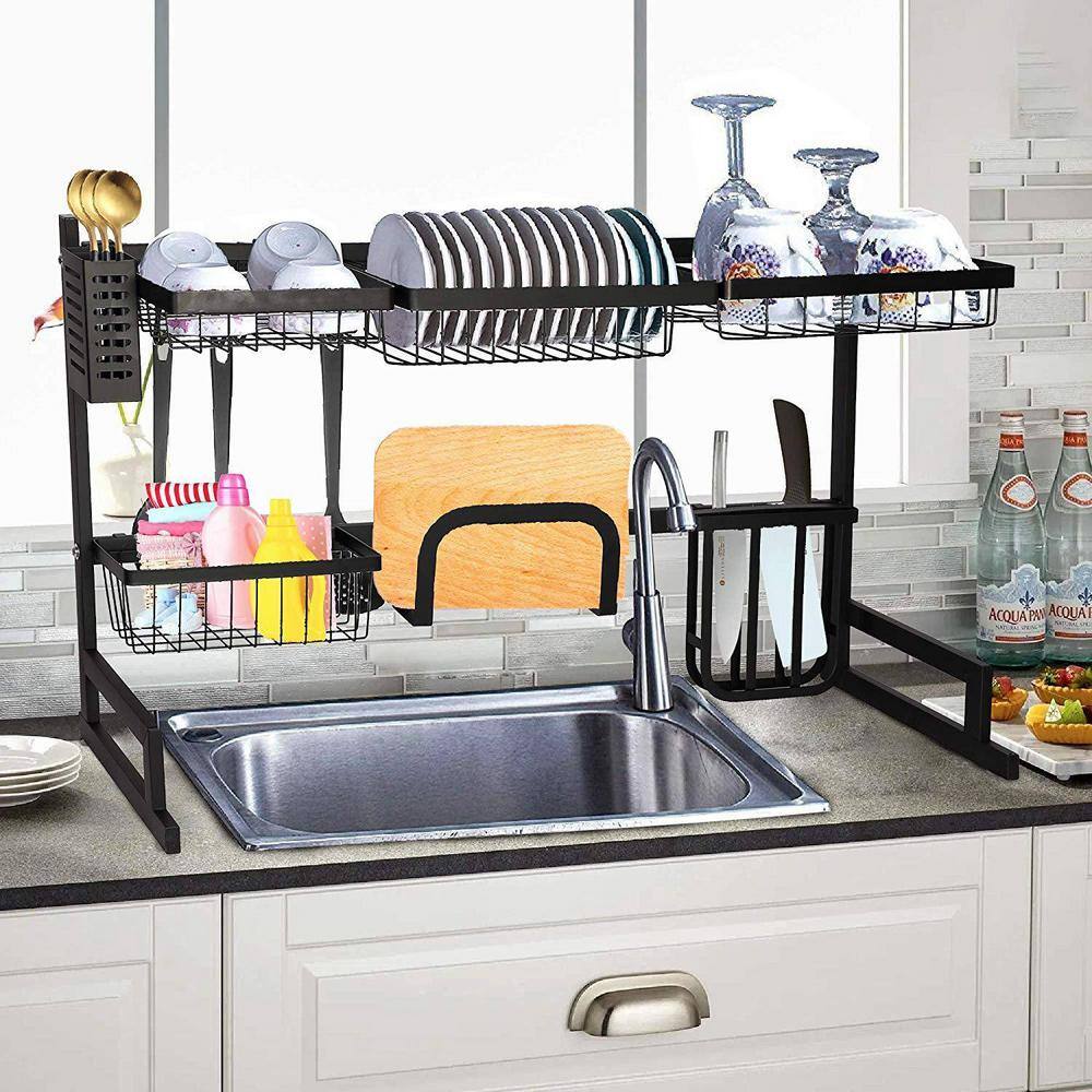 Aoibox 33.4 in. Black Stainless Steel Standing Wide Over Sink Dish Rack Dish Drying Rack Tableware Drainer Organizer