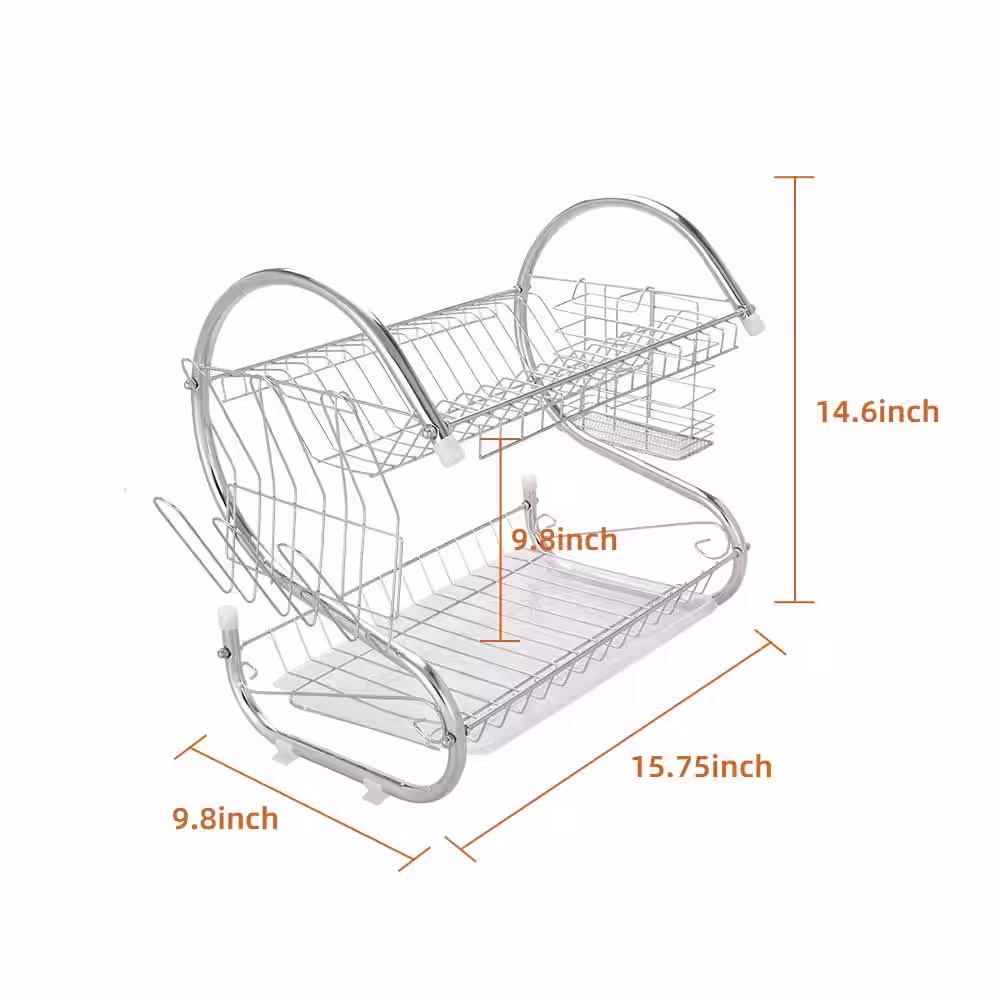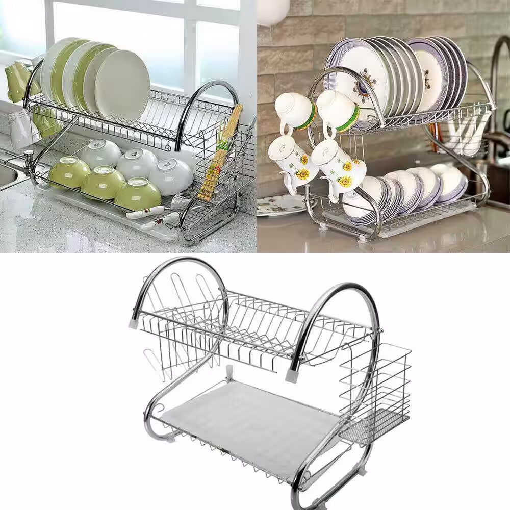 Aoibox 2-Tier Stainless Steel Dish Rack Drainer Kitchen Cutlery Holder Drying Shelf