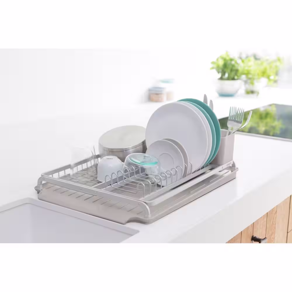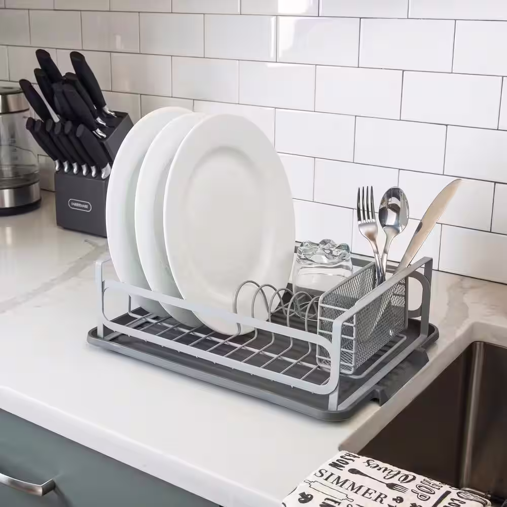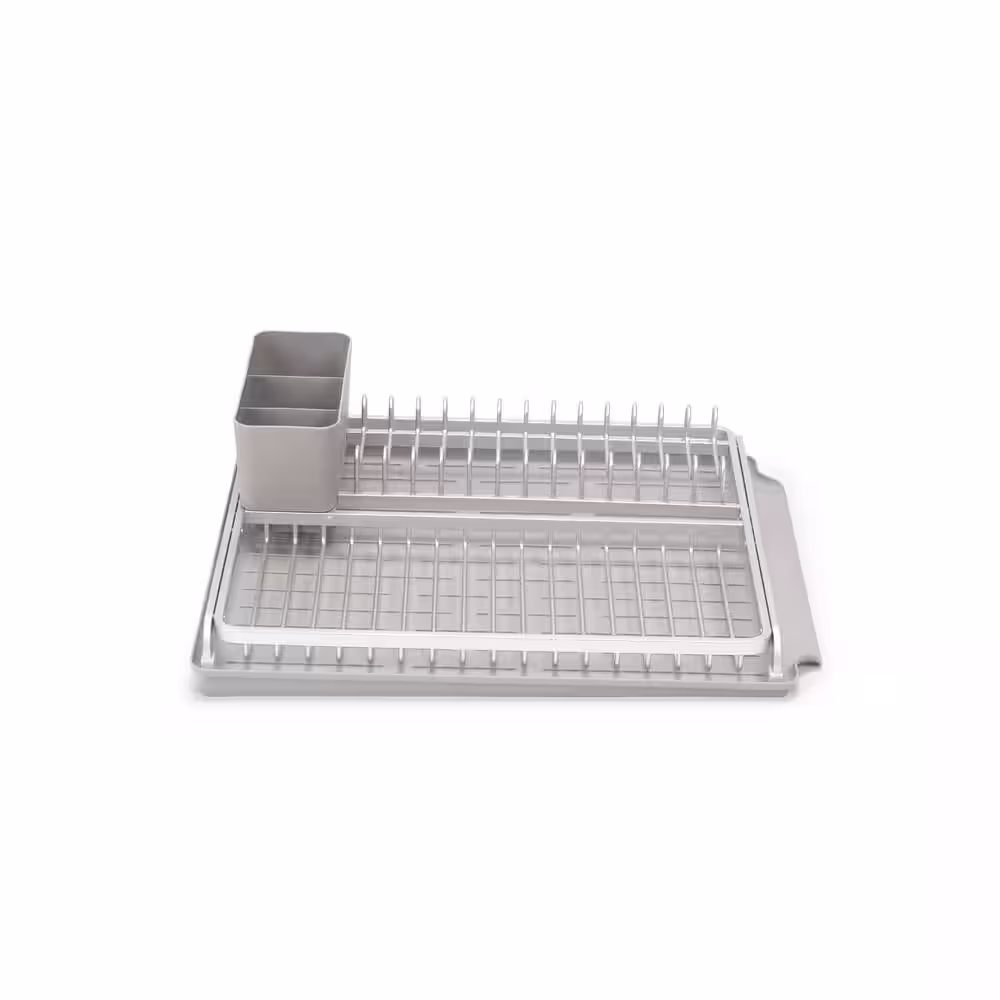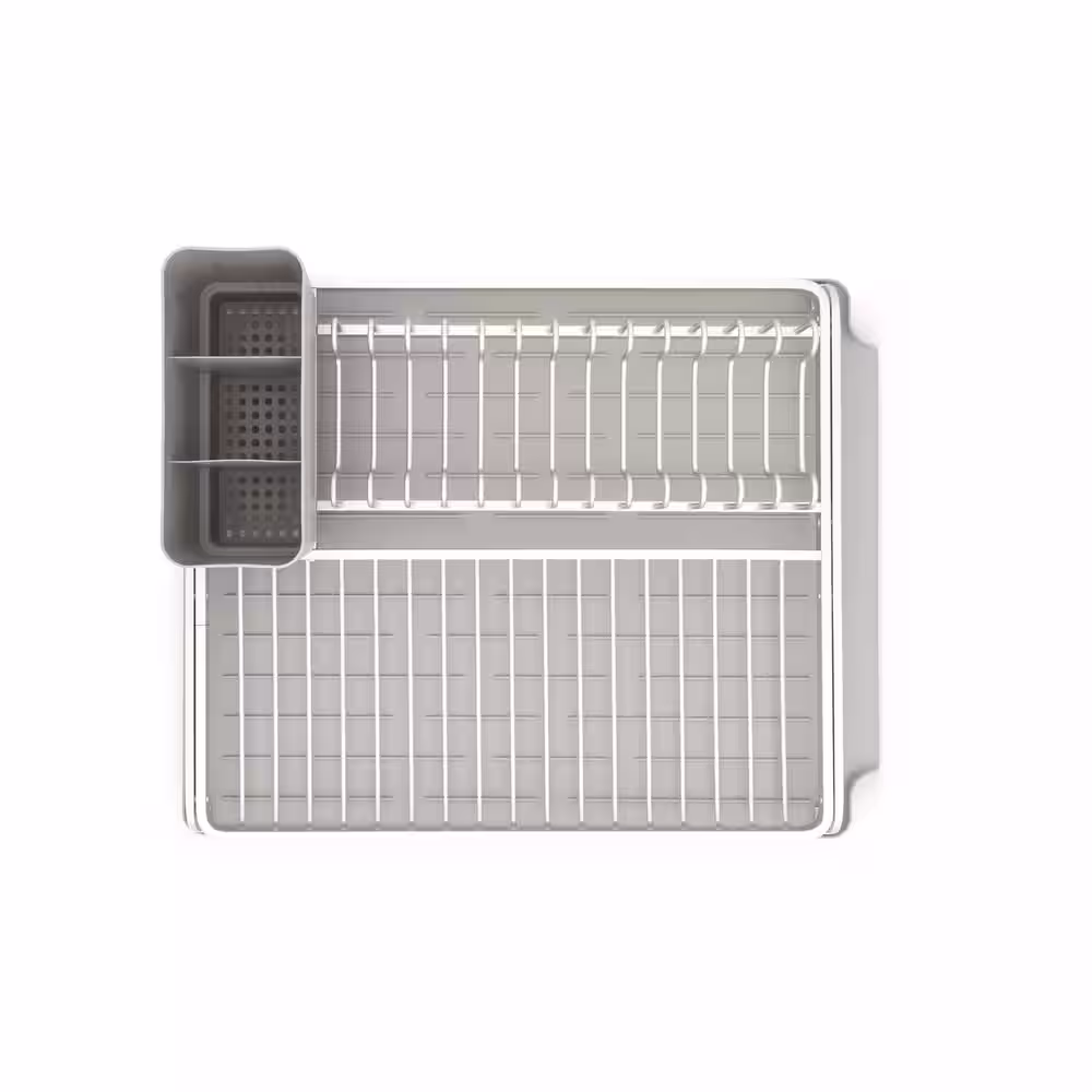 eModernDecor Cozy Block Stainless Steel Gray Foldable Drying Dish Rack with Detachable Utensil Holder