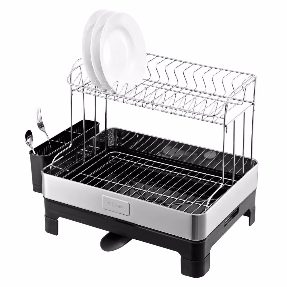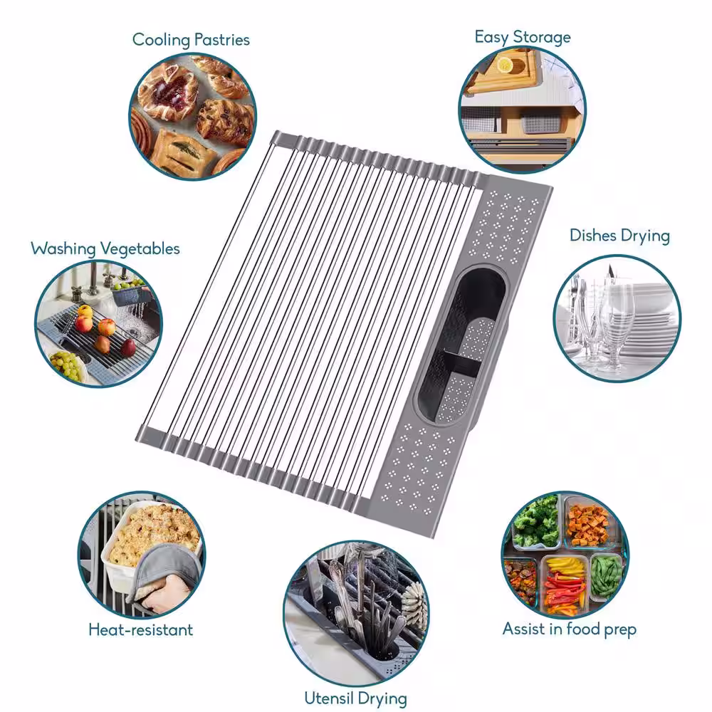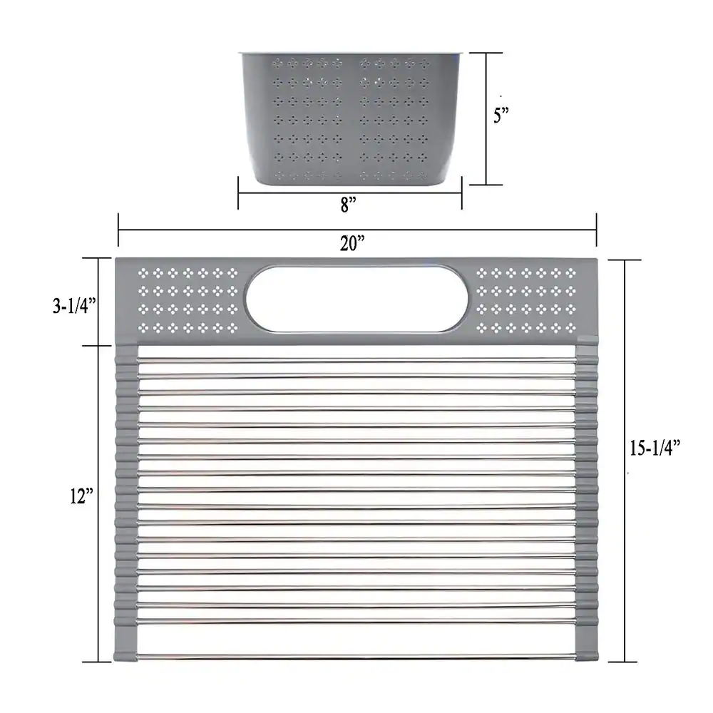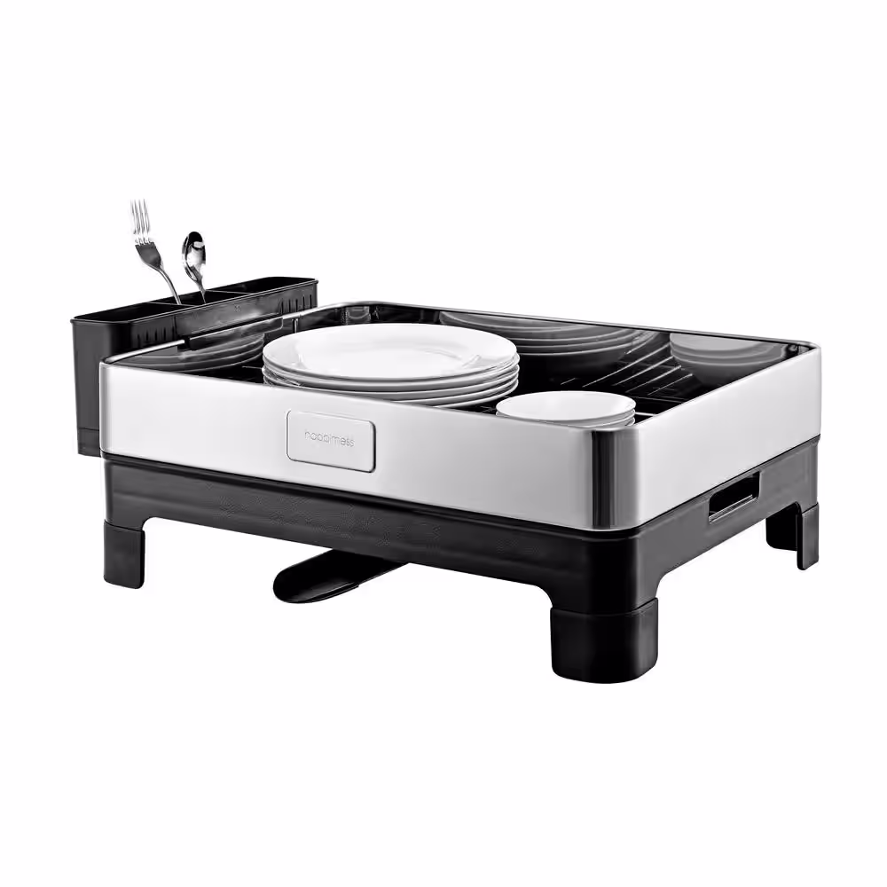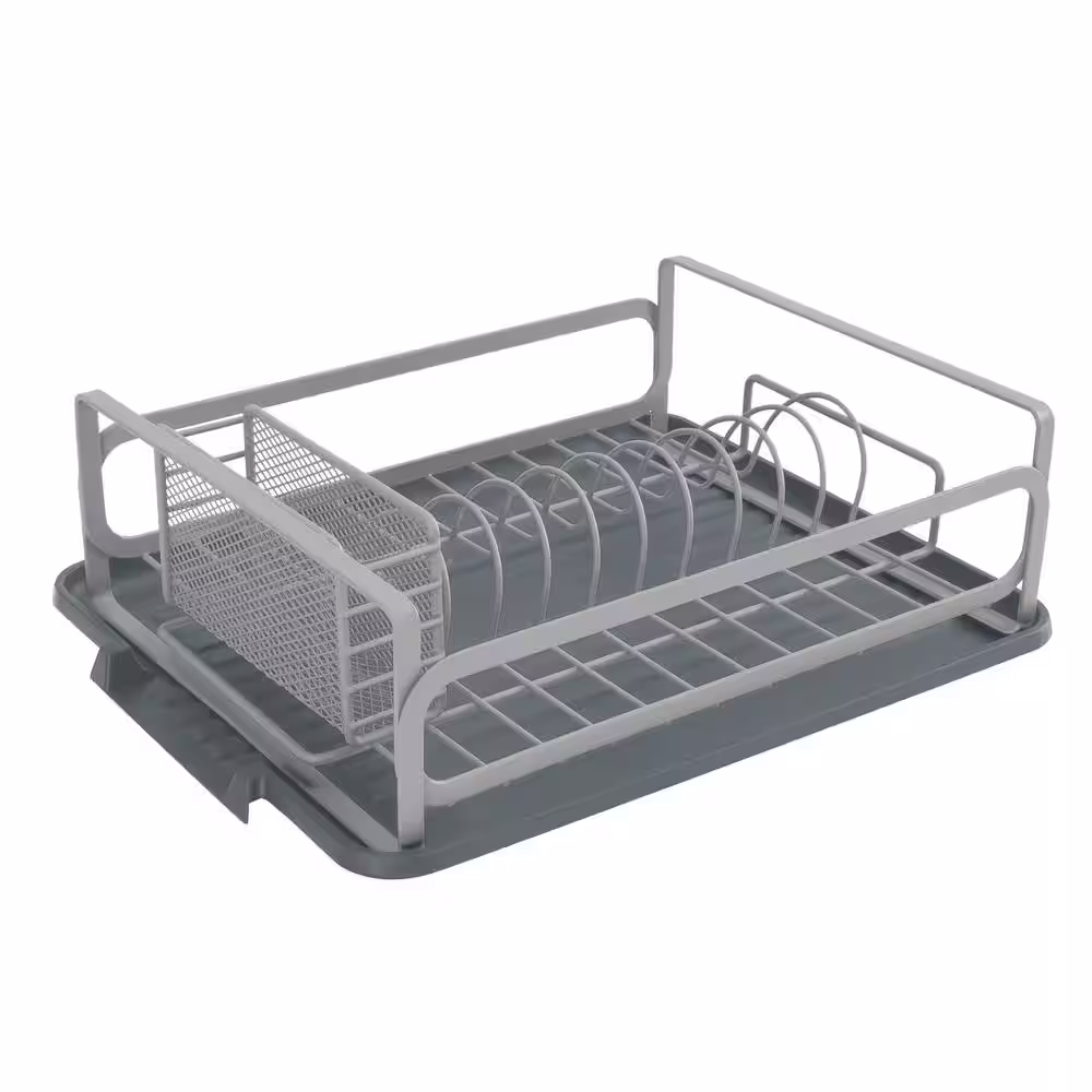 eModernDecor Cozy Block Stainless Steel Gray Foldable Drying Dish Rack with Detachable Utensil Holder