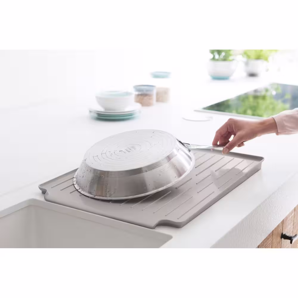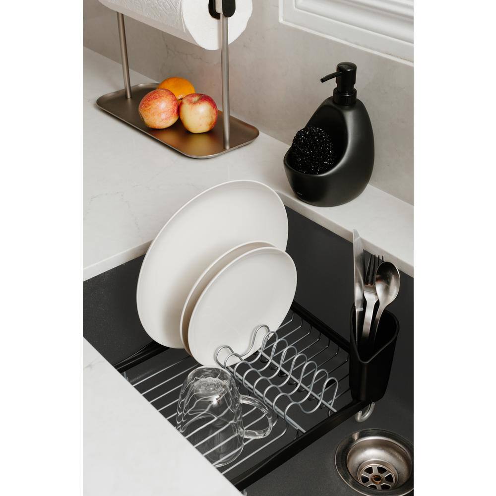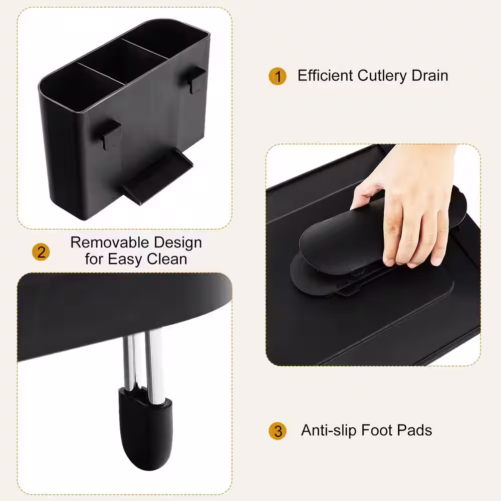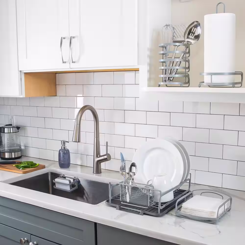 eModernDecor Cozy Block Stainless Steel Gray Foldable Drying Dish Rack with Detachable Utensil Holder